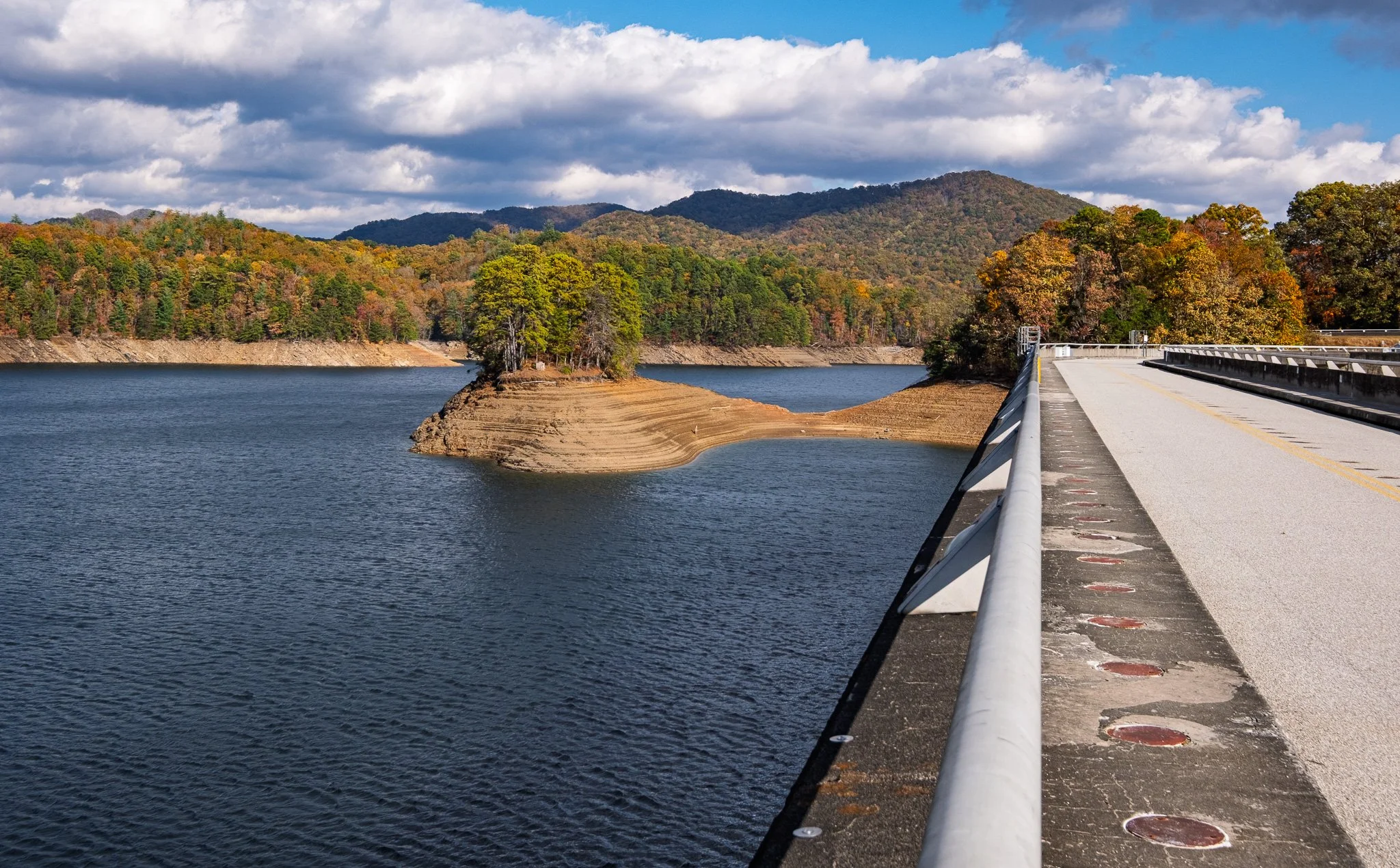 The top of the dam is a road, and you can see how close the water is to the top of the dam on the Fontana Lake side of the road. Compare this to the height of the previous image.