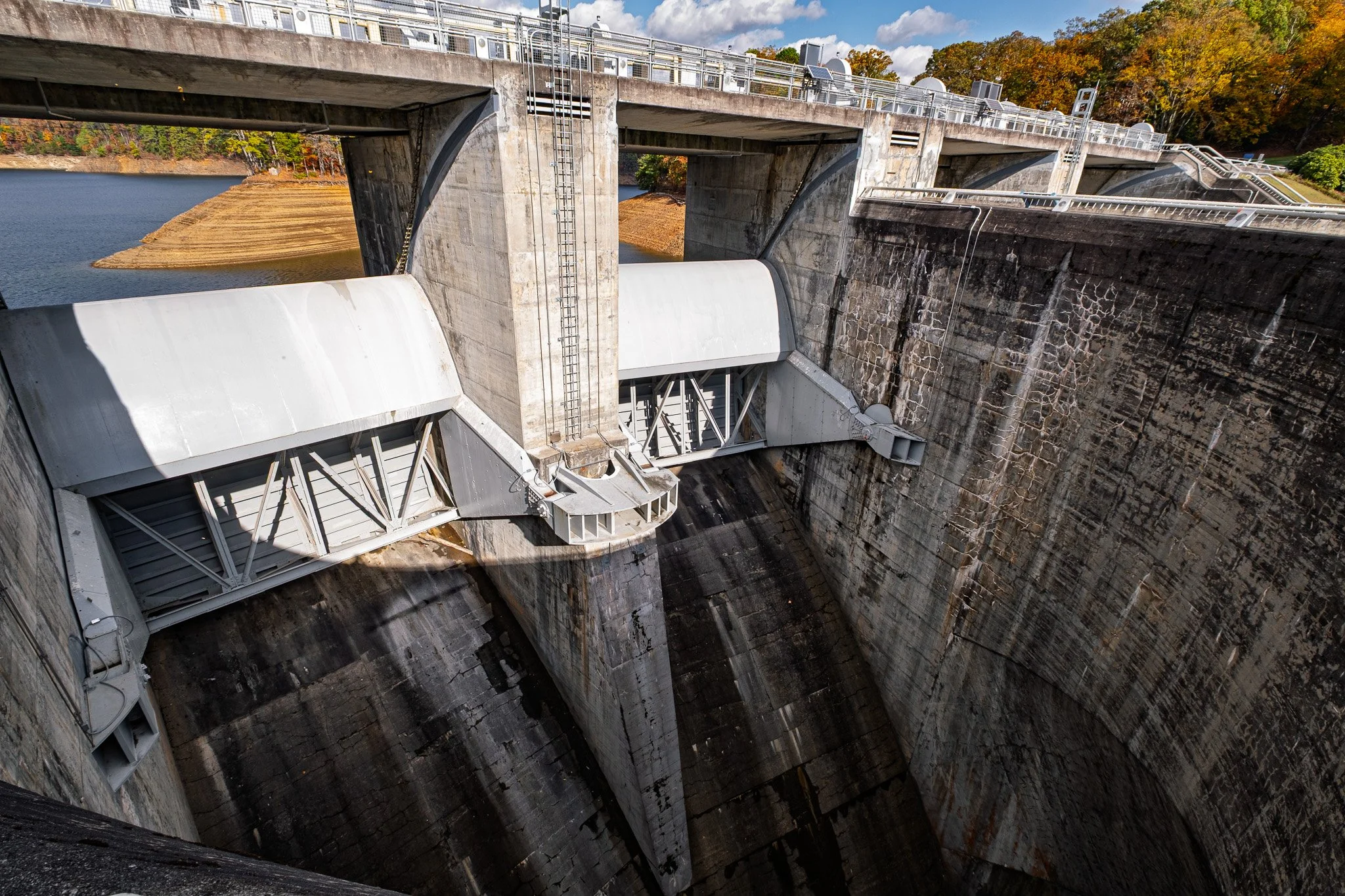 An image of the gates at the top of the spillway, which are opened when Fontana Lake levels get too high.