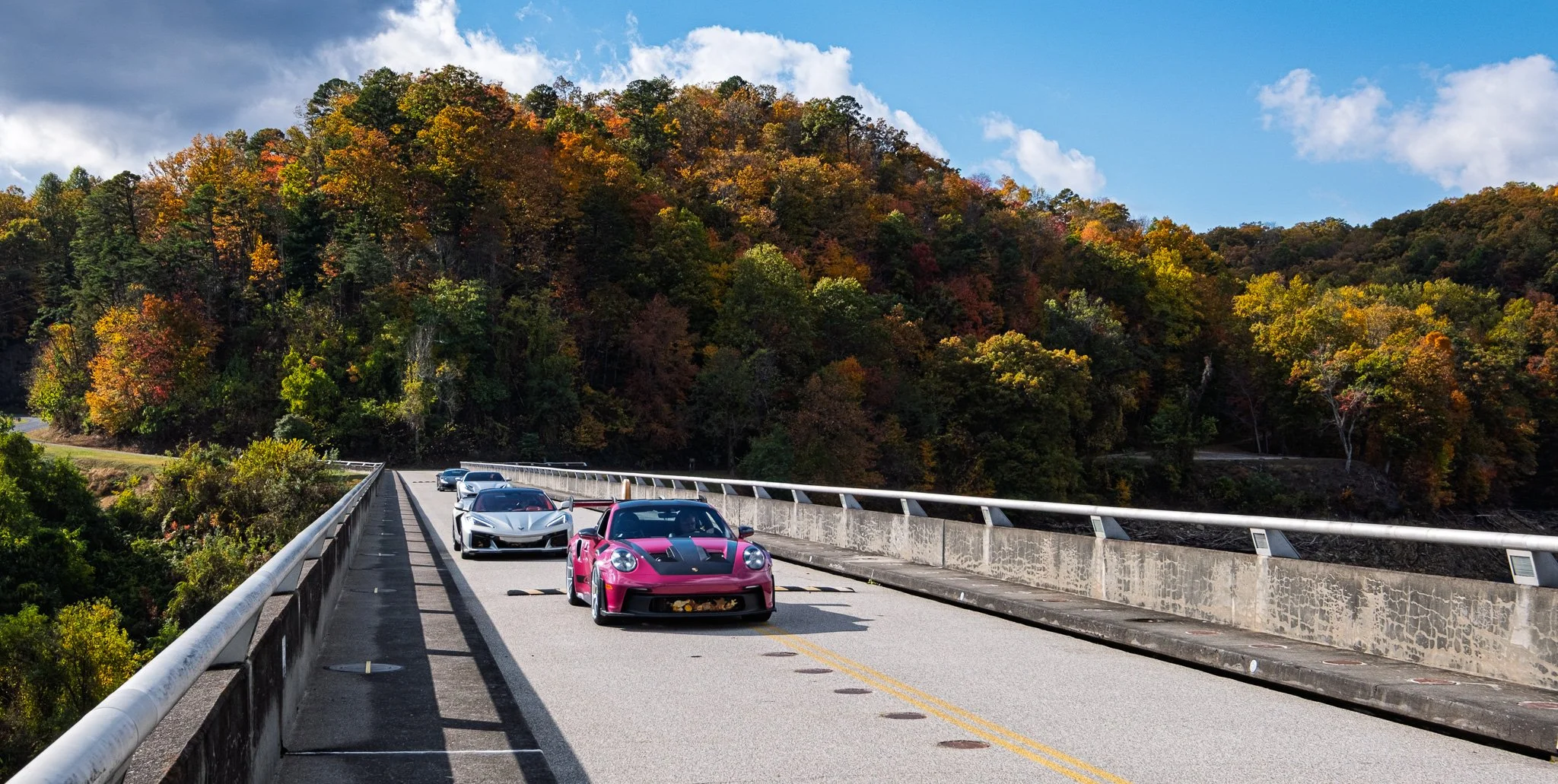 While walking across the dam, this group of car enthusiasts drove past. We will see them again later in the day when we get to the Tail of The Dragon/Deal’s Gap. The group consisted of several Porsches, Corvettes and Ferraris.