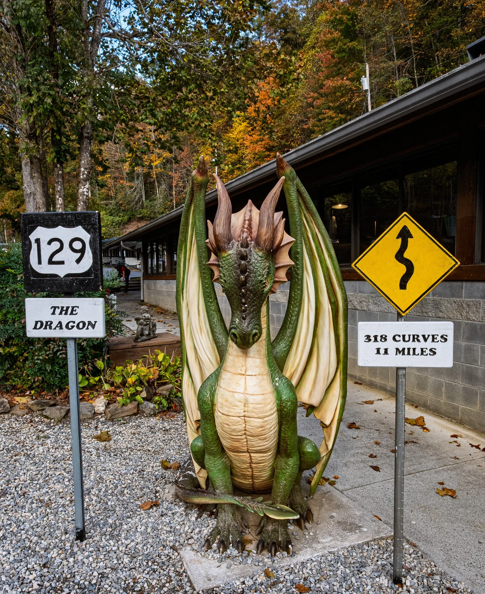 After leaving Fontana Dam, it was time to head for the Tail of The Dragon/Deals Gap. The Tail of The Dragon is a well-known route on NC 129 leading from NC to TN. It is a favorite of motorcycle and sports car enthusiasts. It is “only” 11 miles in length, but consists of 318 turns in that span. It was incredibly fun to drive the Type-R on that route. It finally got to do what it was built to do!!