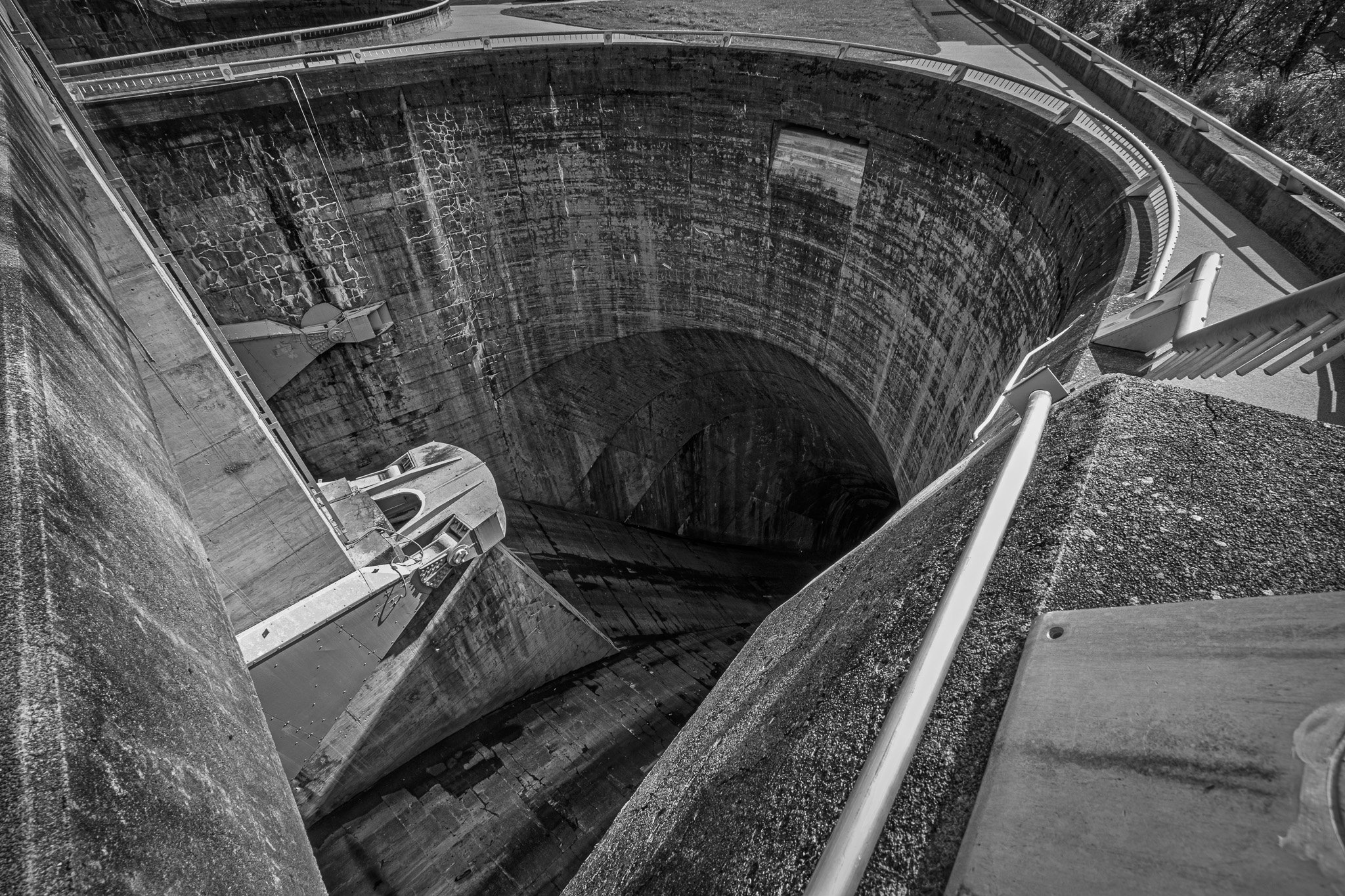 Looking down into the spillway. What an ominous view and another vertigo-inducing vantage point.