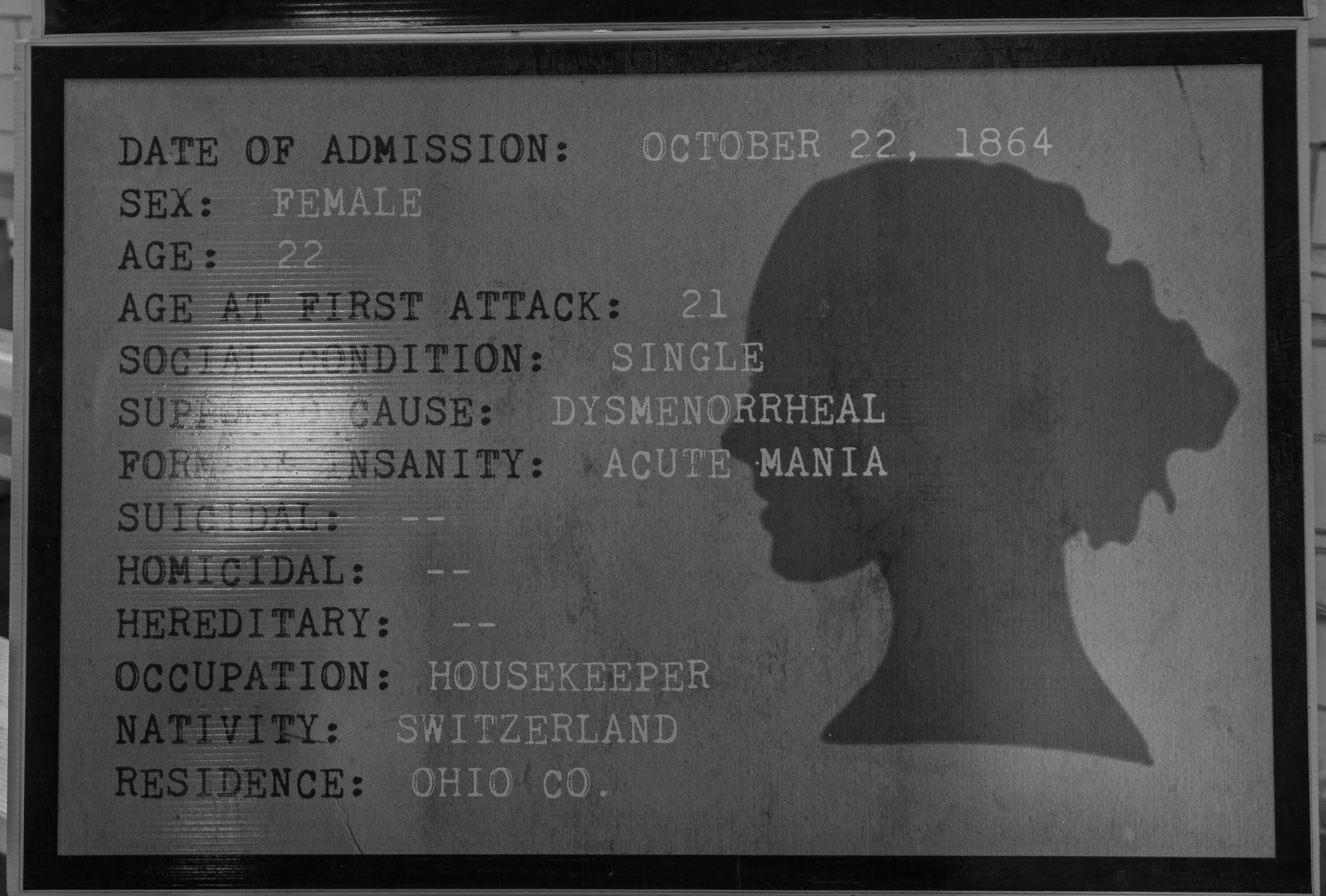 A disproportionate number of the patients were female in the early years. This was believed to be due to the patriarchal nature of the times. A husband or other family member would bring the young woman to the asylum and claim she was “insane,” and she would be admitted just on their word alone. It was common to see young women, such as the one featured here, that were admitted for “dysmenorrheal” acute mania. We can only assume it may have been some type of PMS symptoms which was interepreted as “insane.”