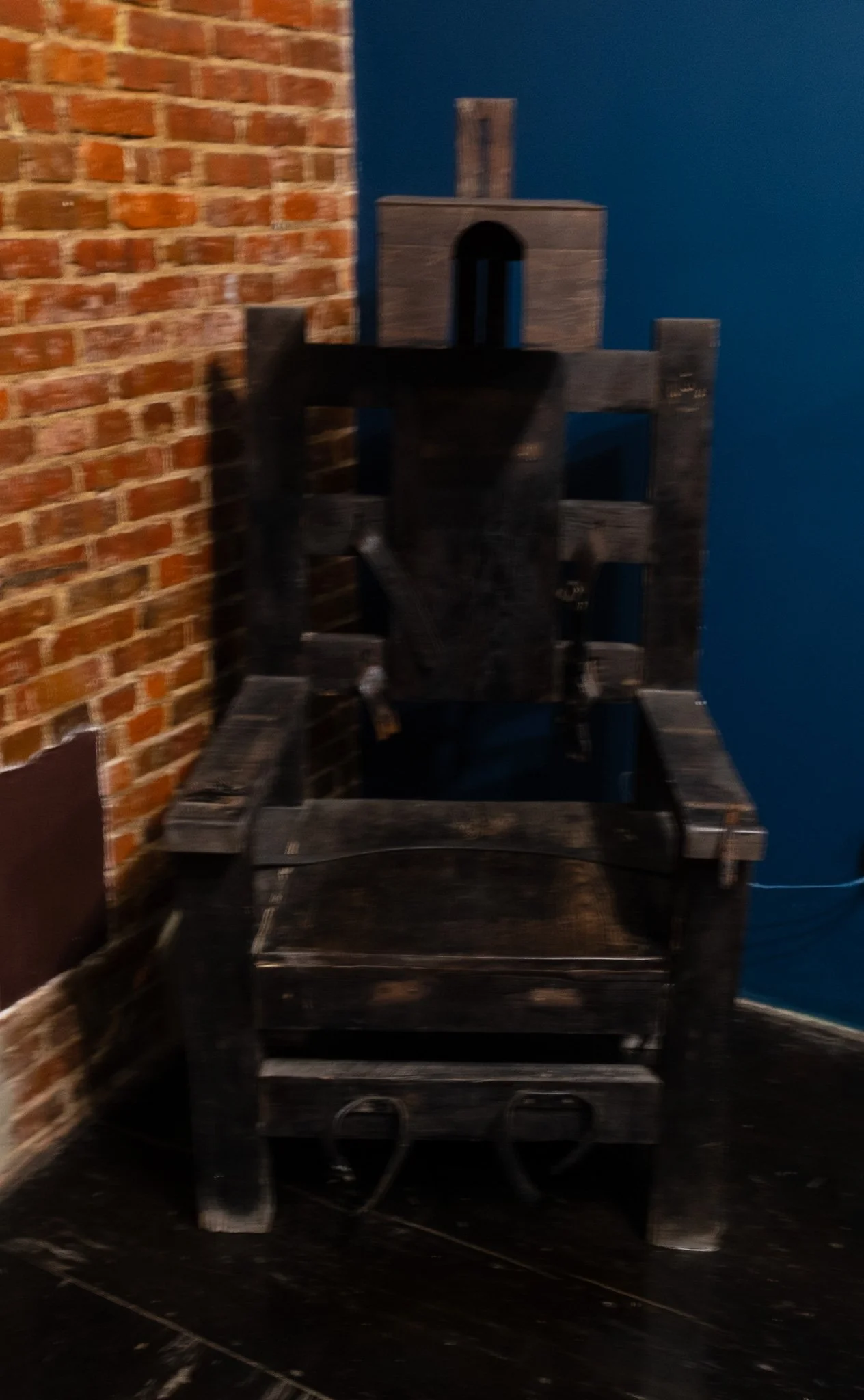Unfortunately, the lighting in this room was so poor that I could not obtain a good quality photo. But, this is a chair used in electroconvulsive therapy.