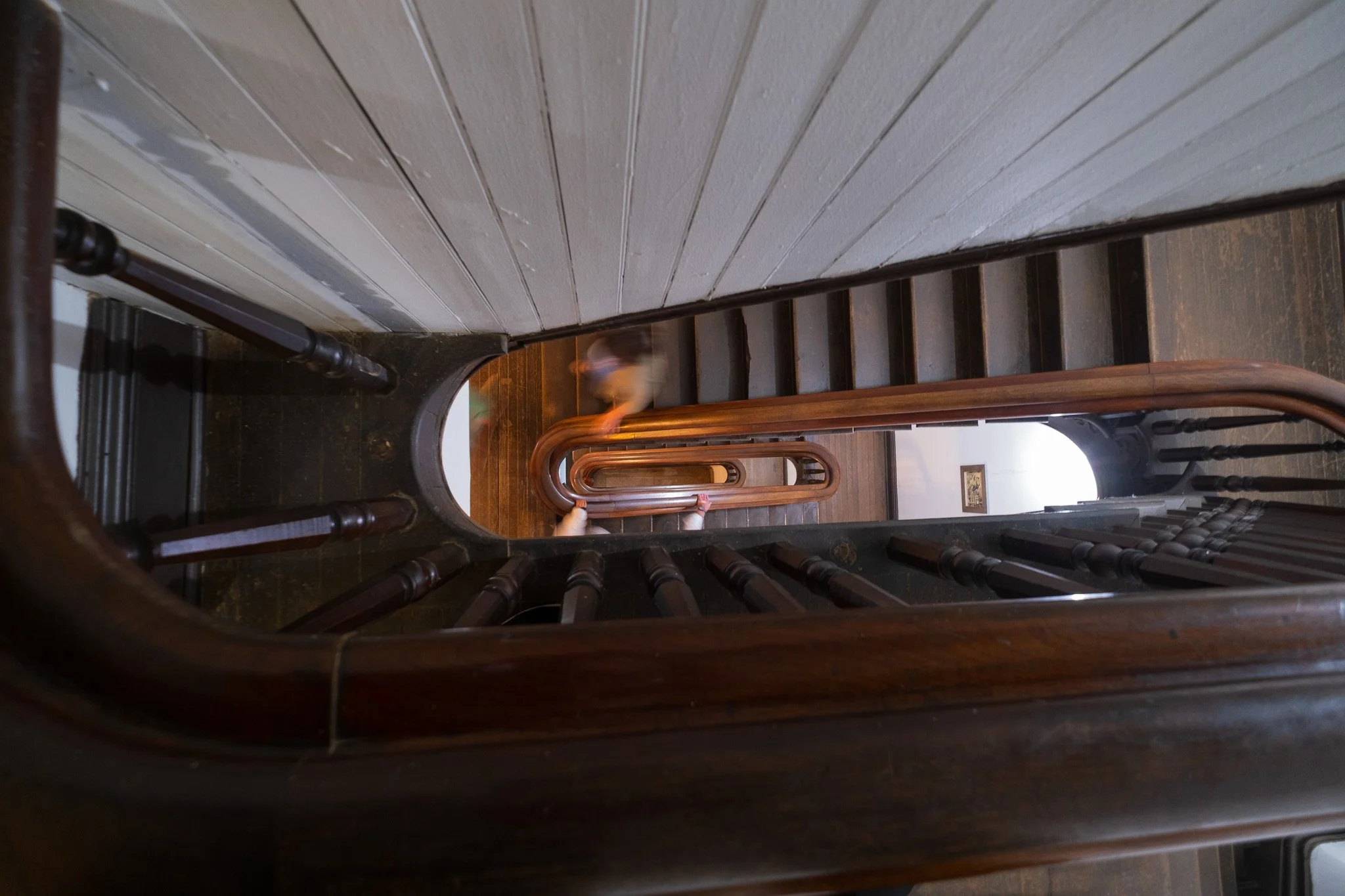 Wonderful old staircase in the center of the main building with the original hardwood handrailing.