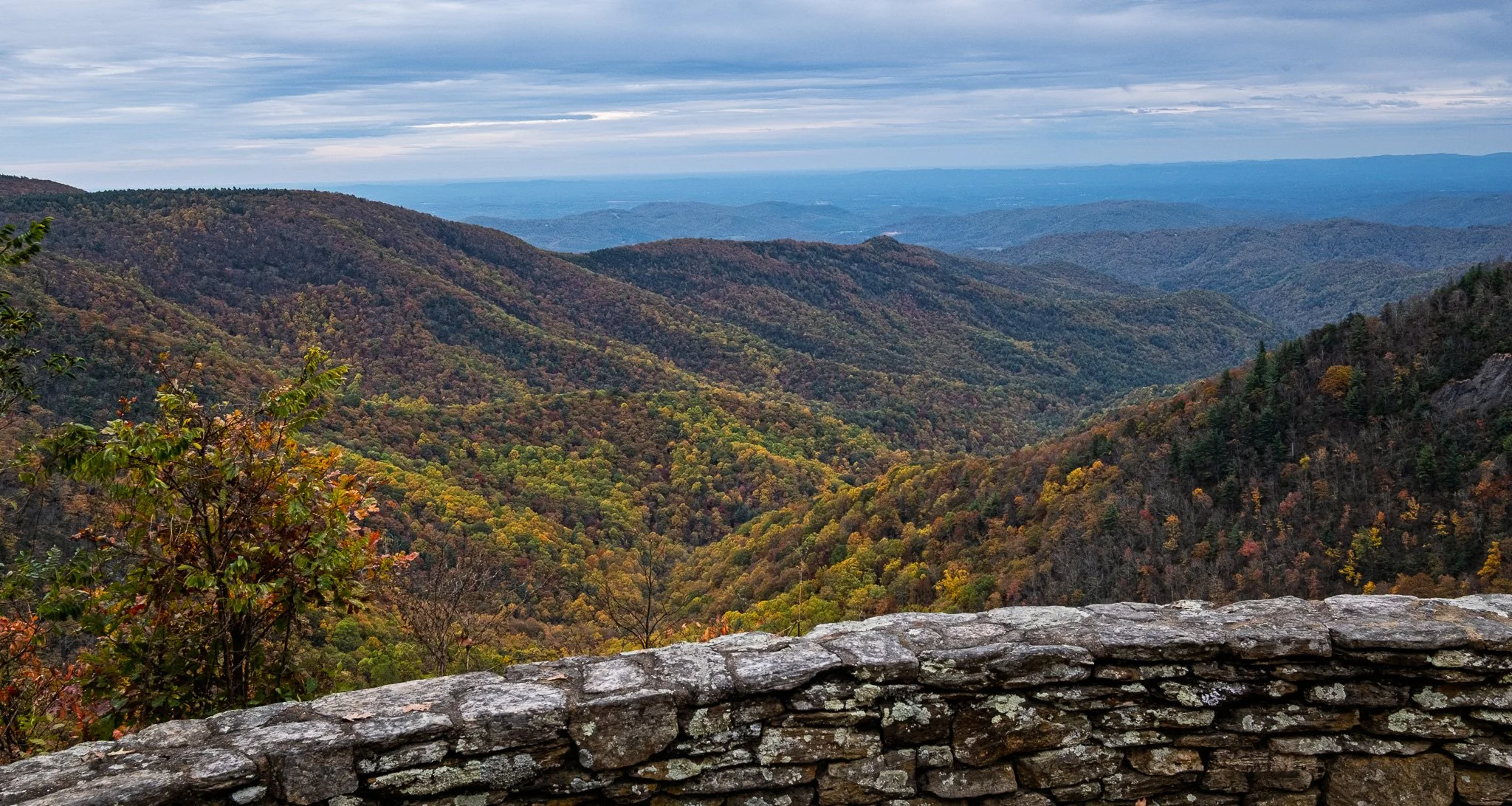 Brinegar Cabin on the Blue Ridge Parkway (Milepost 238.5) is a well-preserved 19th-century Appalachian mountain homestead once owned by Martin and Caroline Brinegar. Built around the 1880s, the original log cabin, granary, and springhouse interpret self-sufficient farm life before the Parkway’s creation, with summer demonstrations of traditional crafts like weaving. Listed on the National Register of Historic Places, it offers a tangible glimpse into rural family life in the Southern Appalachians.