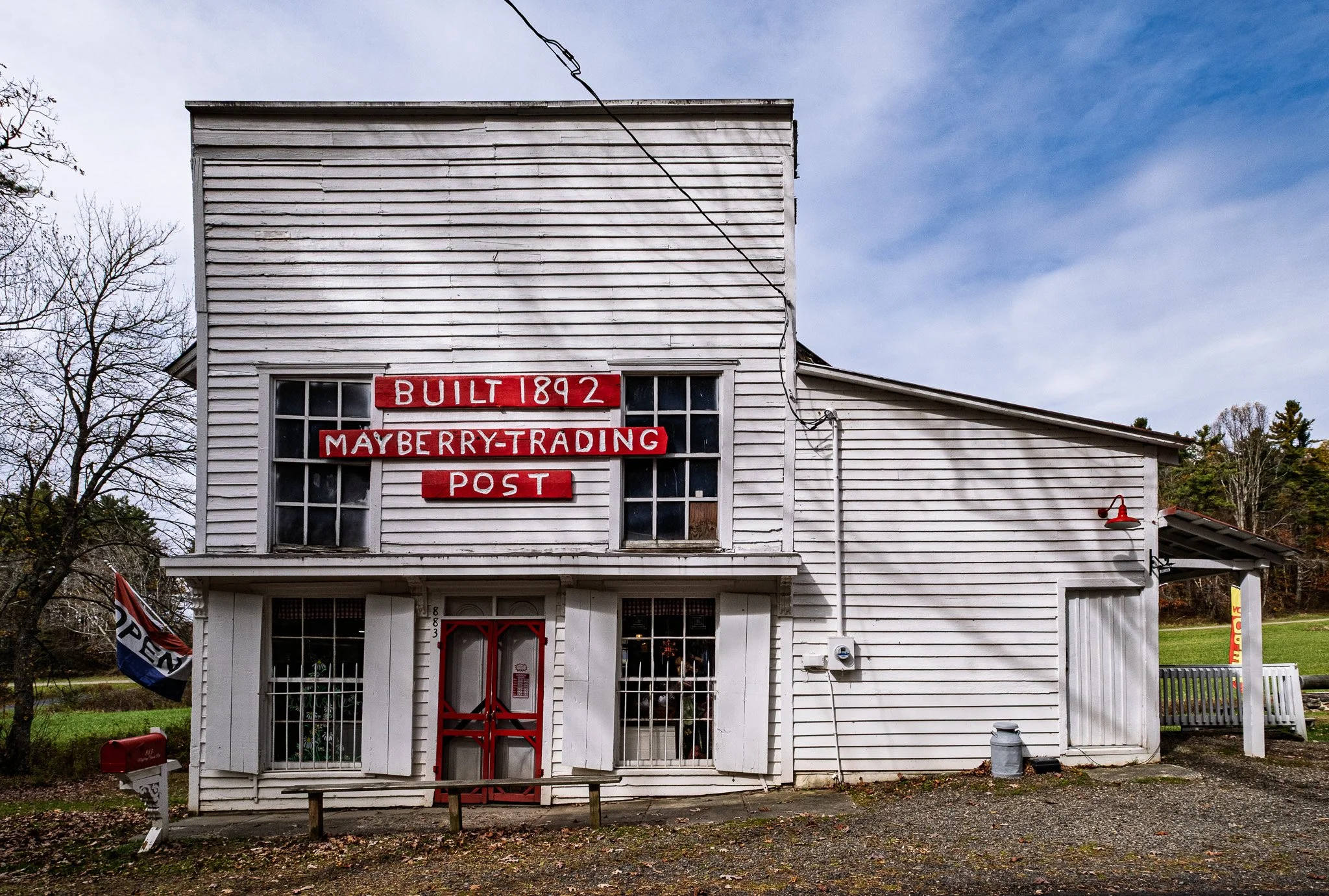 The Mayberry Trading Post is a historic general store built in 1892 near Milepost 180.5 on the Blue Ridge Parkway in Meadows of Dan, Virginia. Originally serving the local community as a store and post office, it now offers local crafts, prepared food, traditional mountaincraft demonstrations, music, and a nostalgic glimpse into Appalachian heritage. Its enduring presence connects visitors with authentic mountain culture and history.