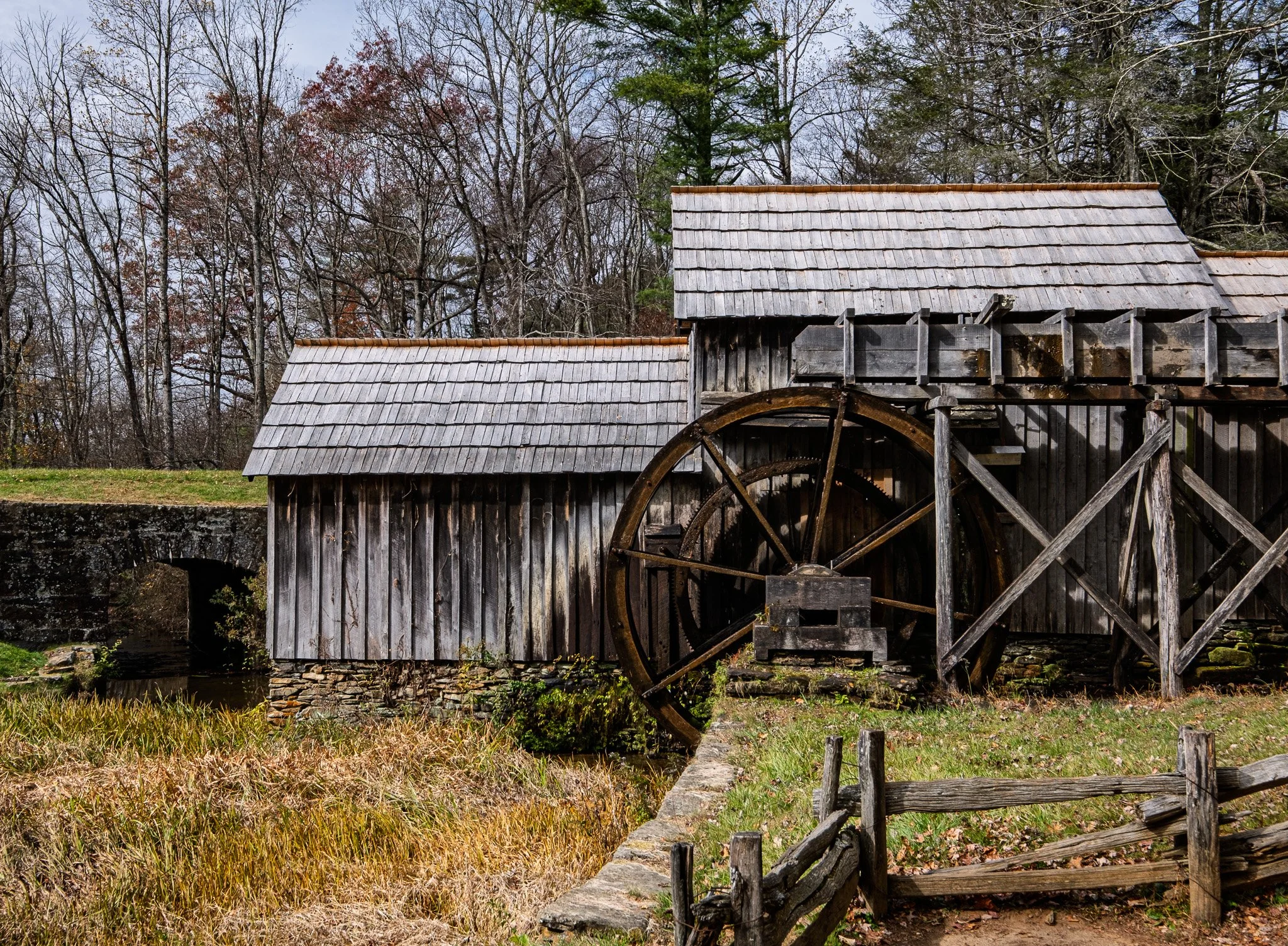 Mabry Mill, at Milepost 176.2 on the Blue Ridge Parkway in Virginia, is one of the most photographed and beloved historic sites on the route. Built by Edwin B. Mabry around 1903–1910, this charming water-powered mill once served as a gristmill, sawmill, blacksmith, and woodworking shop for local farmers. Today the National Park Service preserves the mill complex with interpretive trails, demonstrations of traditional Appalachian crafts, scenic views, and a glimpse into early 20th-century mountain life. Visitors enjoy the mill’s iconic setting amid forest and pond reflections year-round.