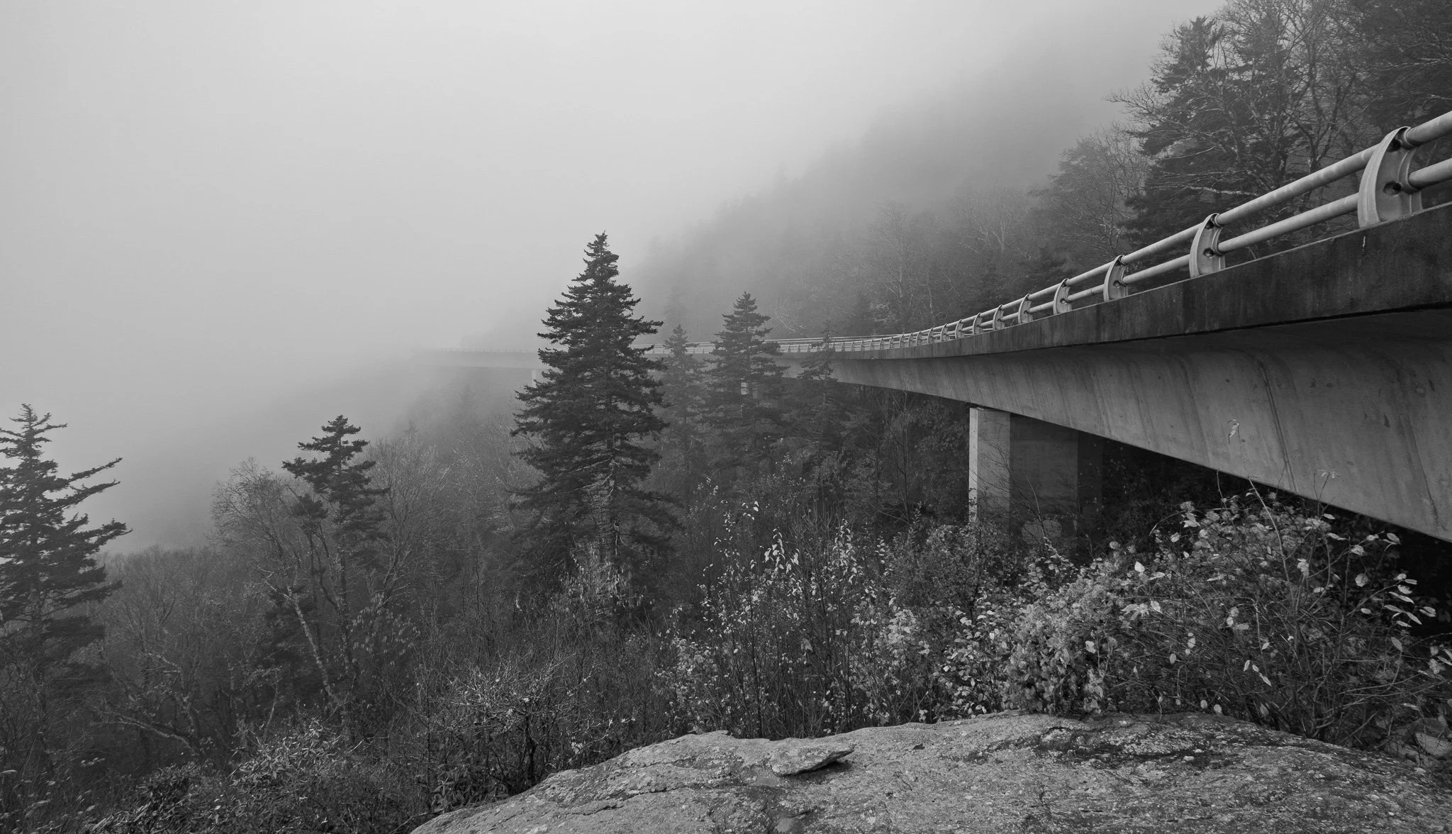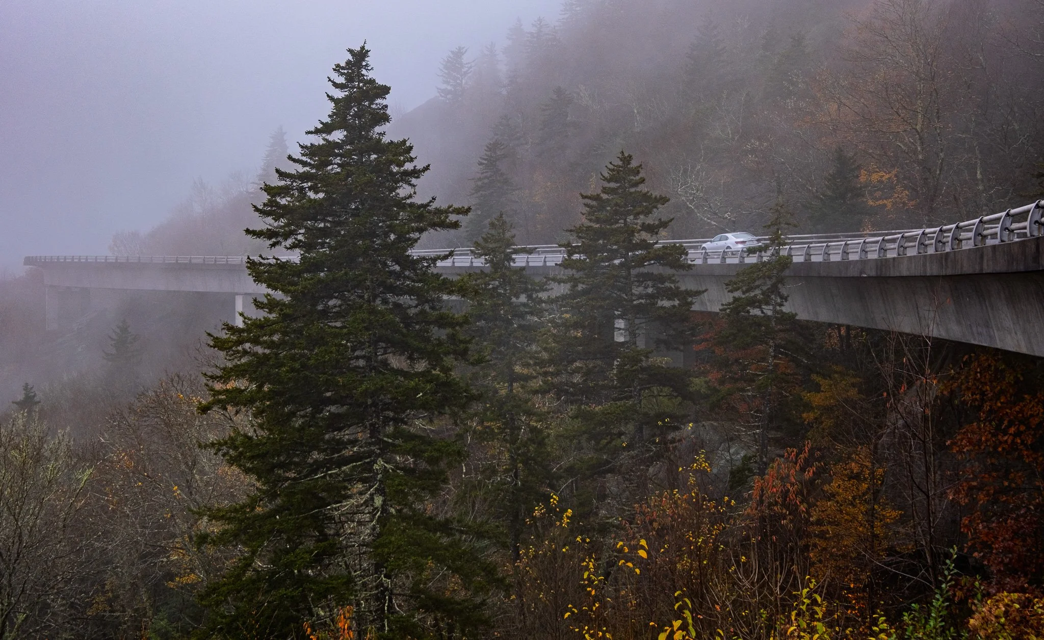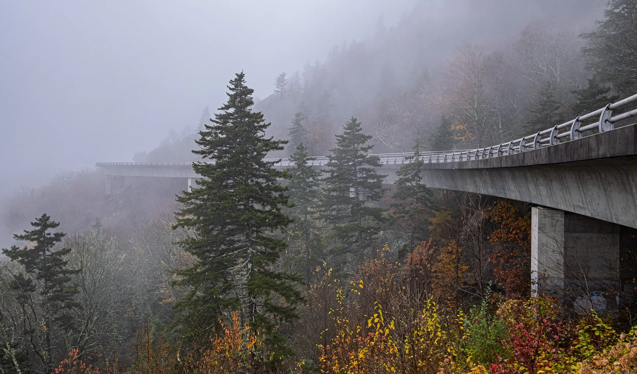 One of the most truly iconic images of the Blue Ridge Parkway is the Linn Cove Viaduct. However, a grand photo of this iconic structure was thwarted by the heave cloud cover that day.