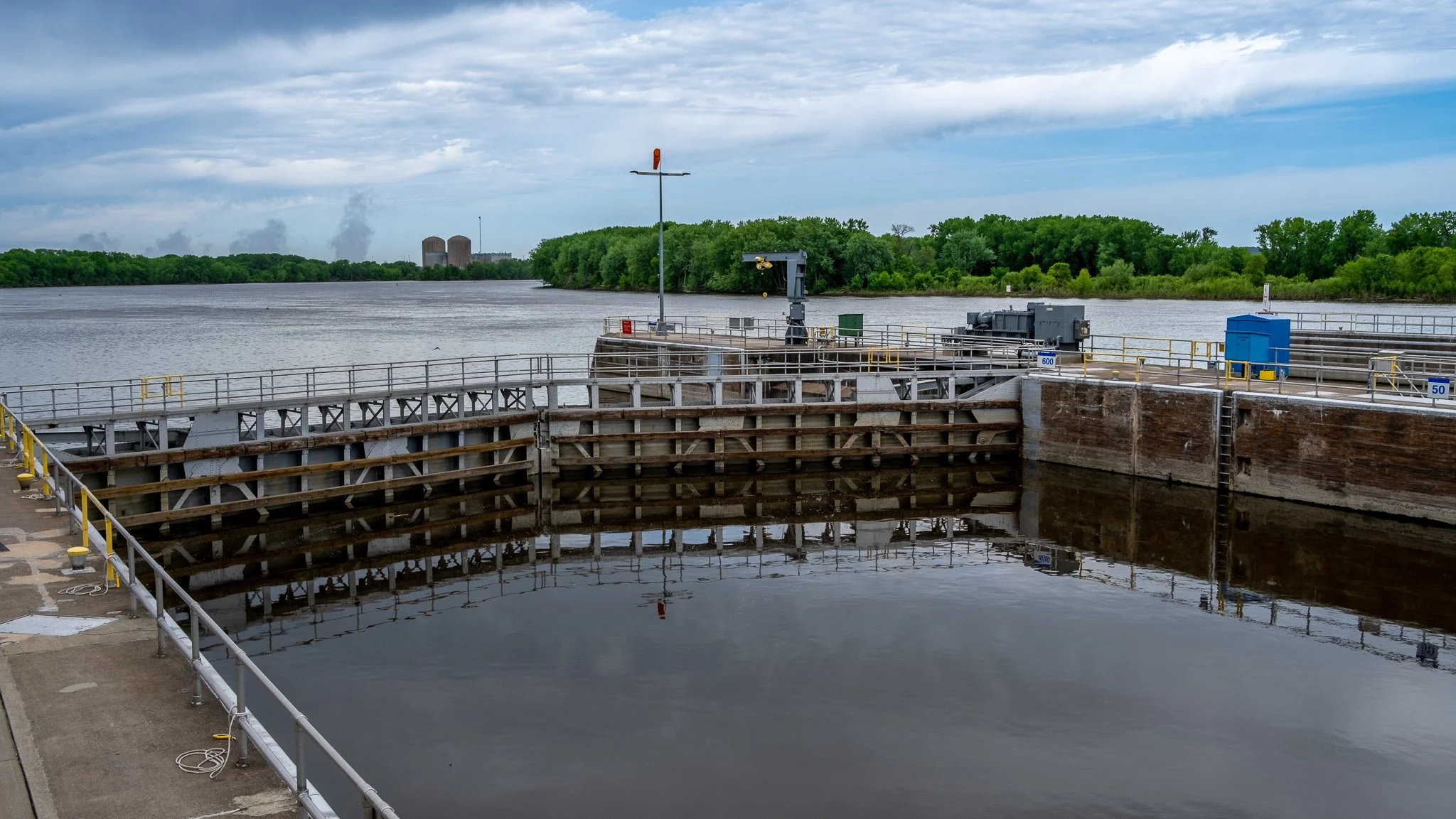 A brief stop in Red Wing, MN to visit Lock & Dam No. 3. Notice the nuclear power plant in the background.