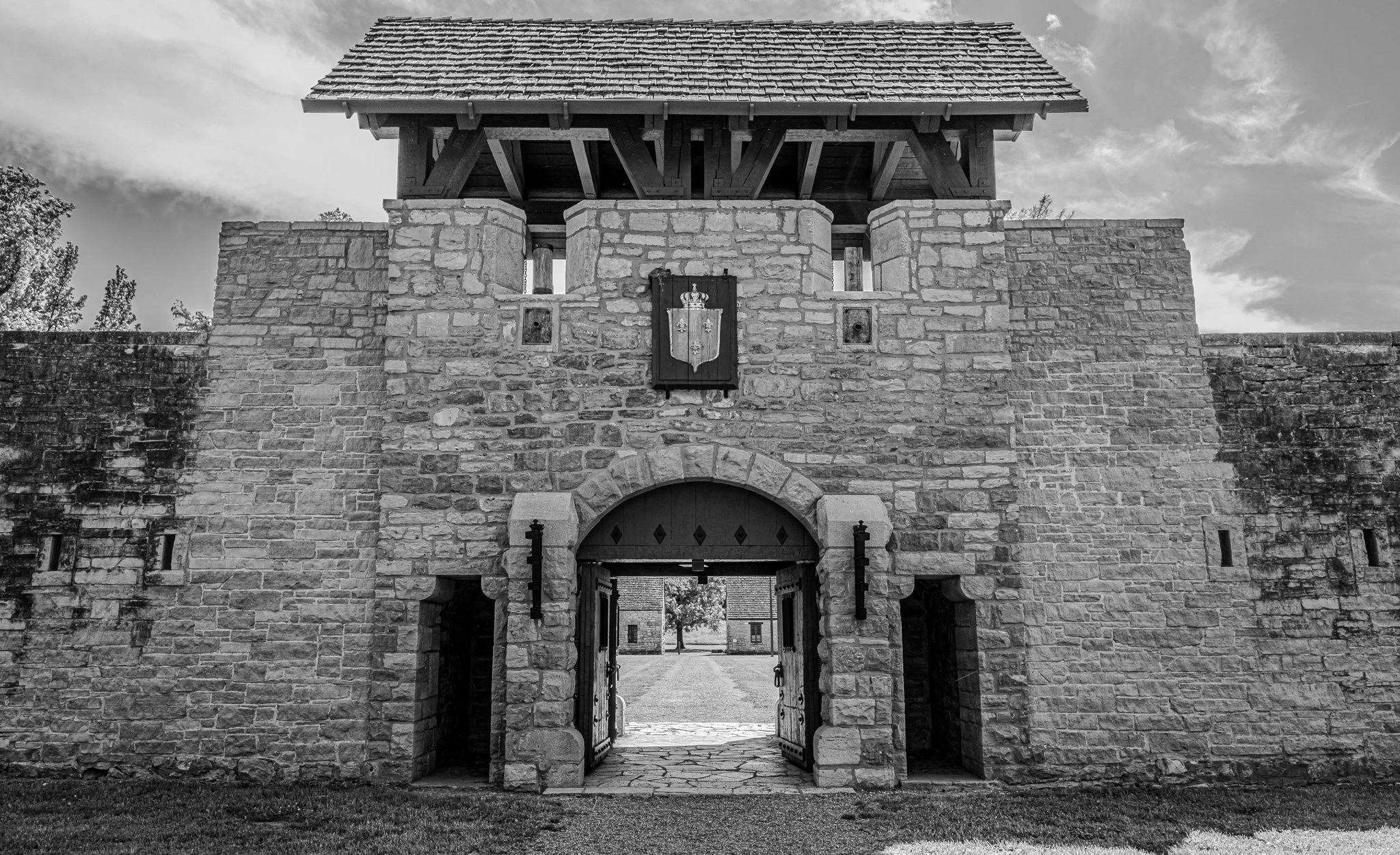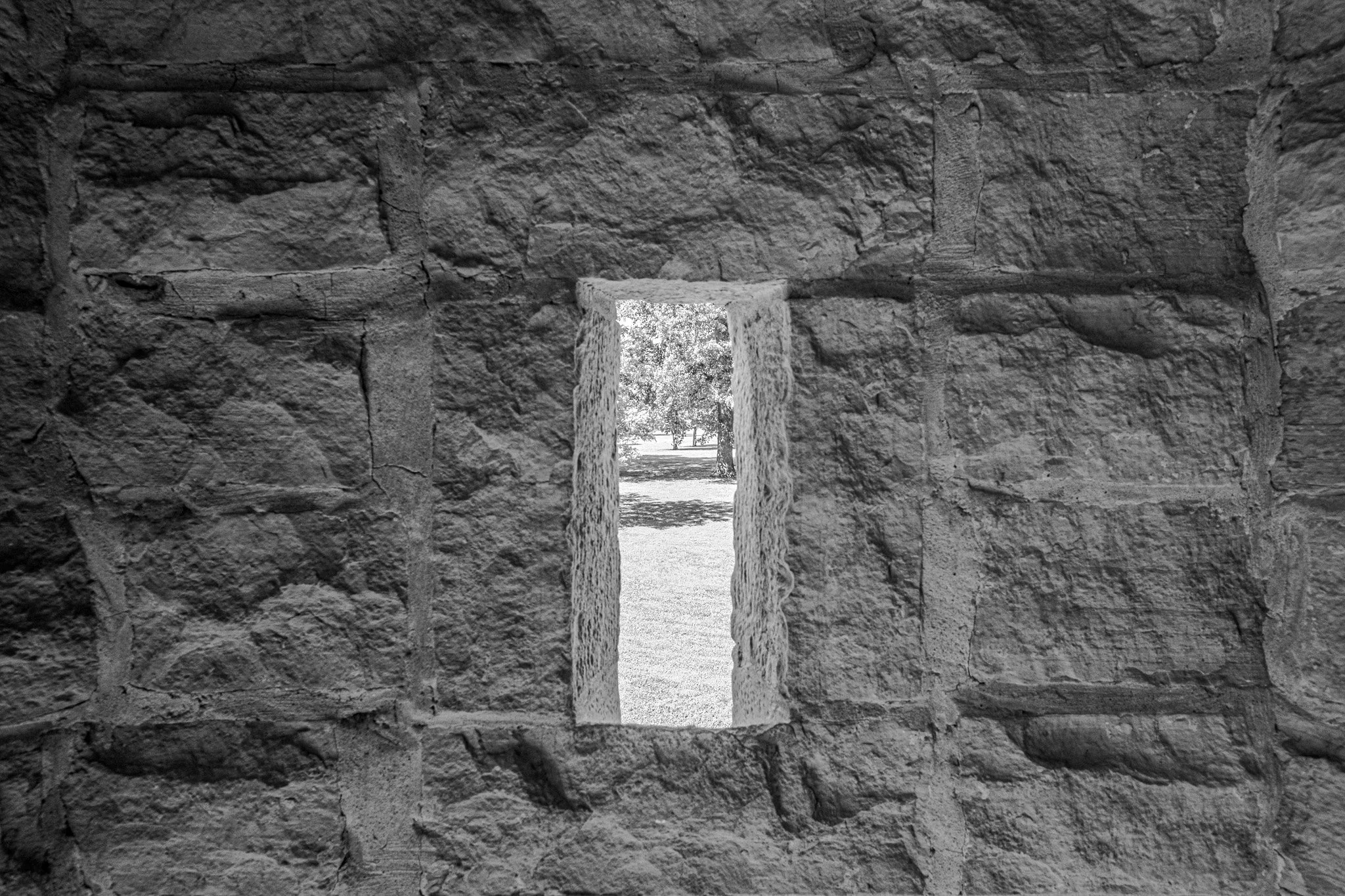 Each corner had a raised lookout point with small vertical openings for viewing and for firing from while remaining safely behind the stone walls.