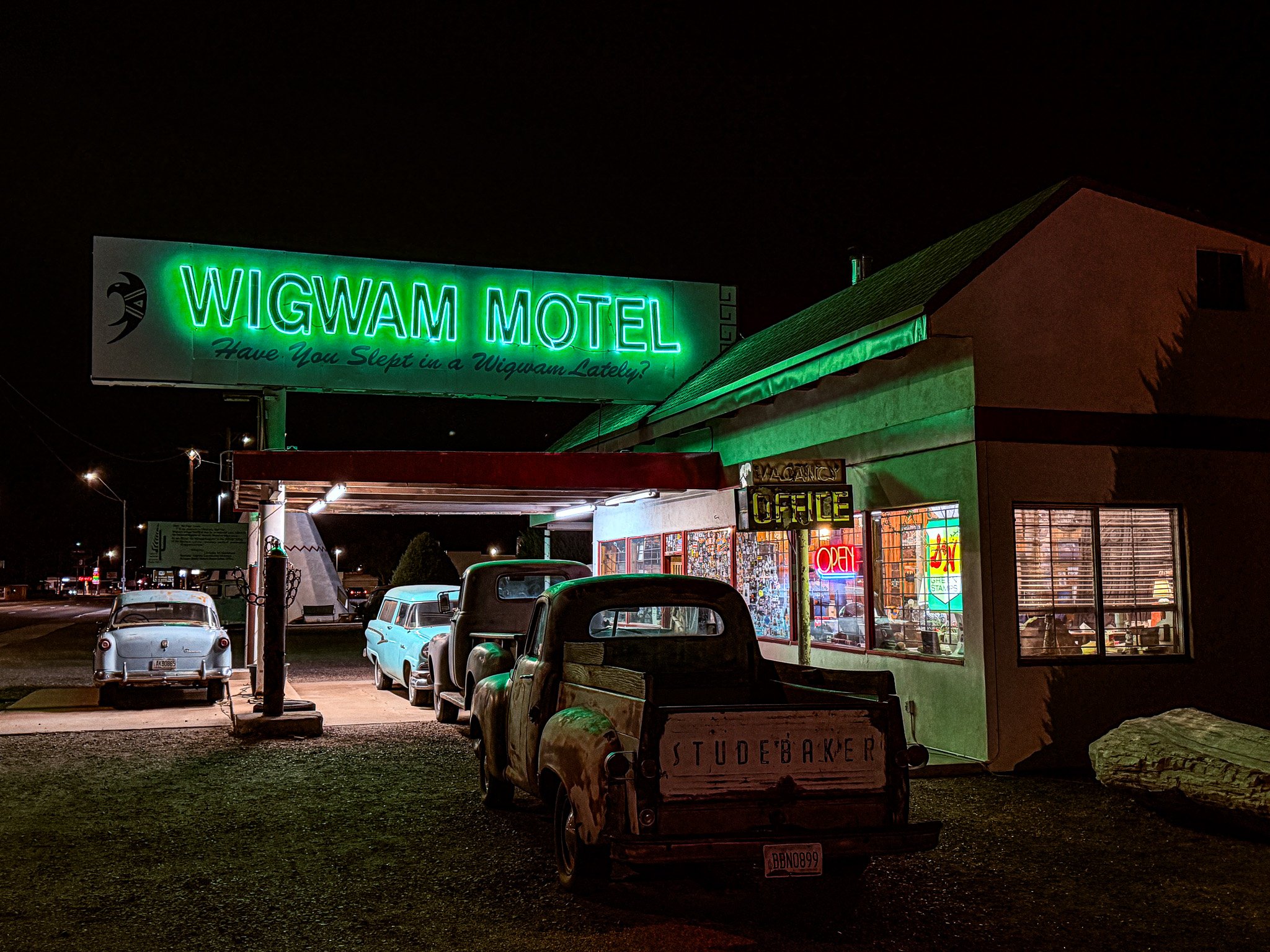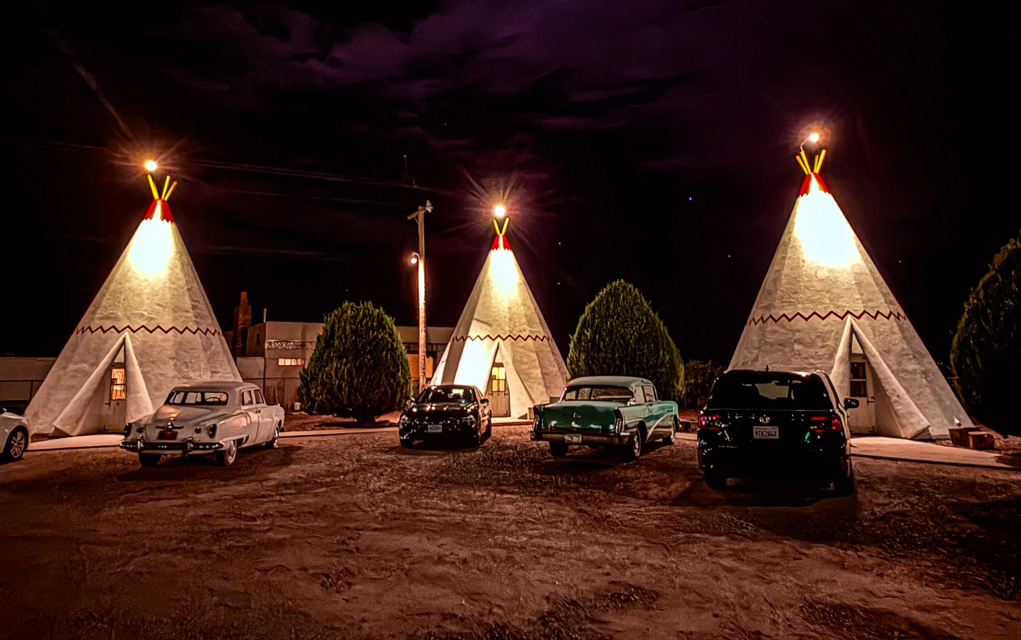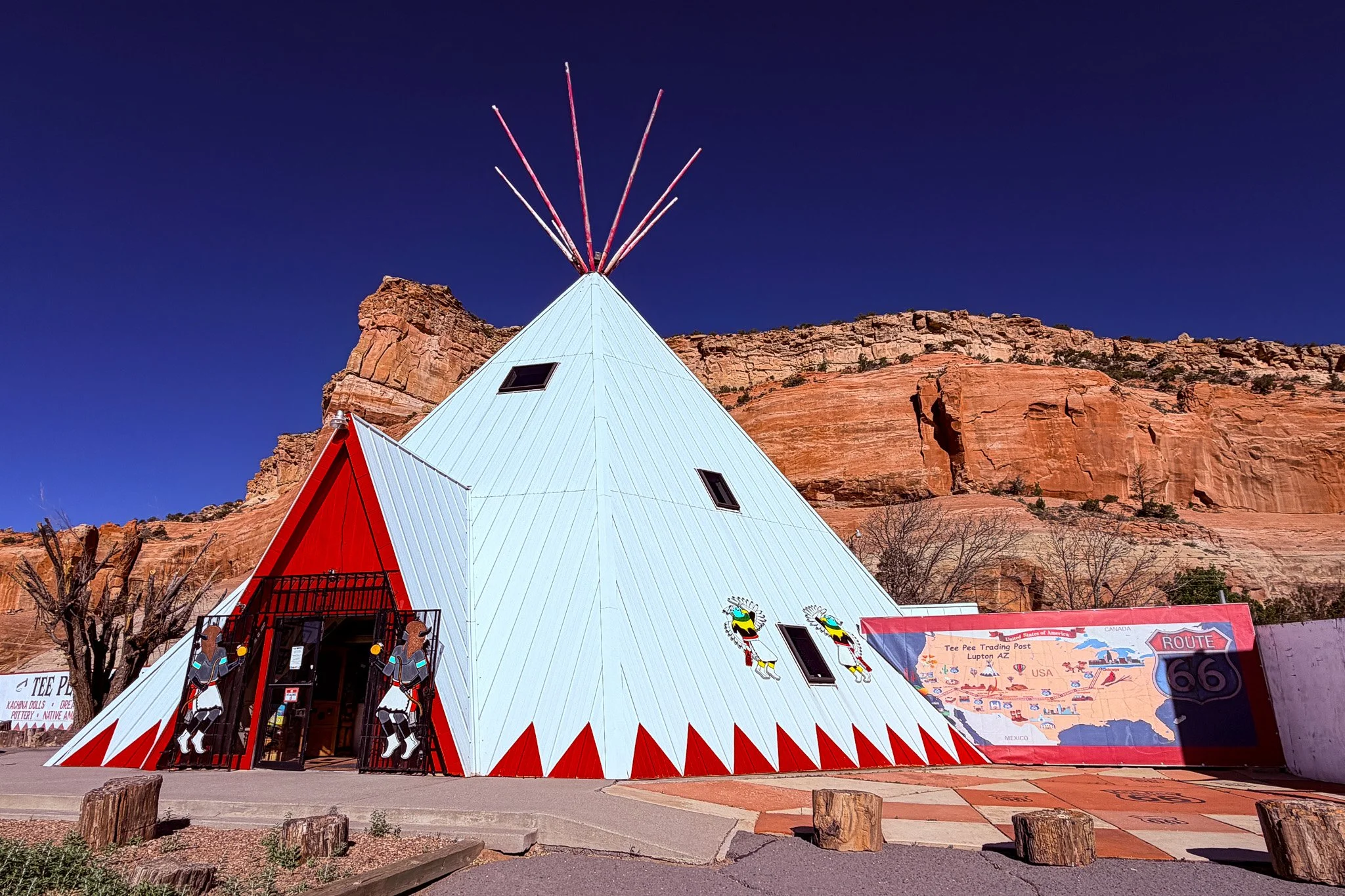 The Wigwam Motel Holbrook is a classic Route 66 landmark built in 1950 by Chester E. Lewis. It features concrete teepee-shaped rooms arranged around a courtyard, each with vintage furnishings and nostalgic roadside charm. Listed on the National Register of Historic Places, it’s one of only a few surviving Wigwam Villages in the U.S. and remains a popular stop near Petrified Forest National Park.