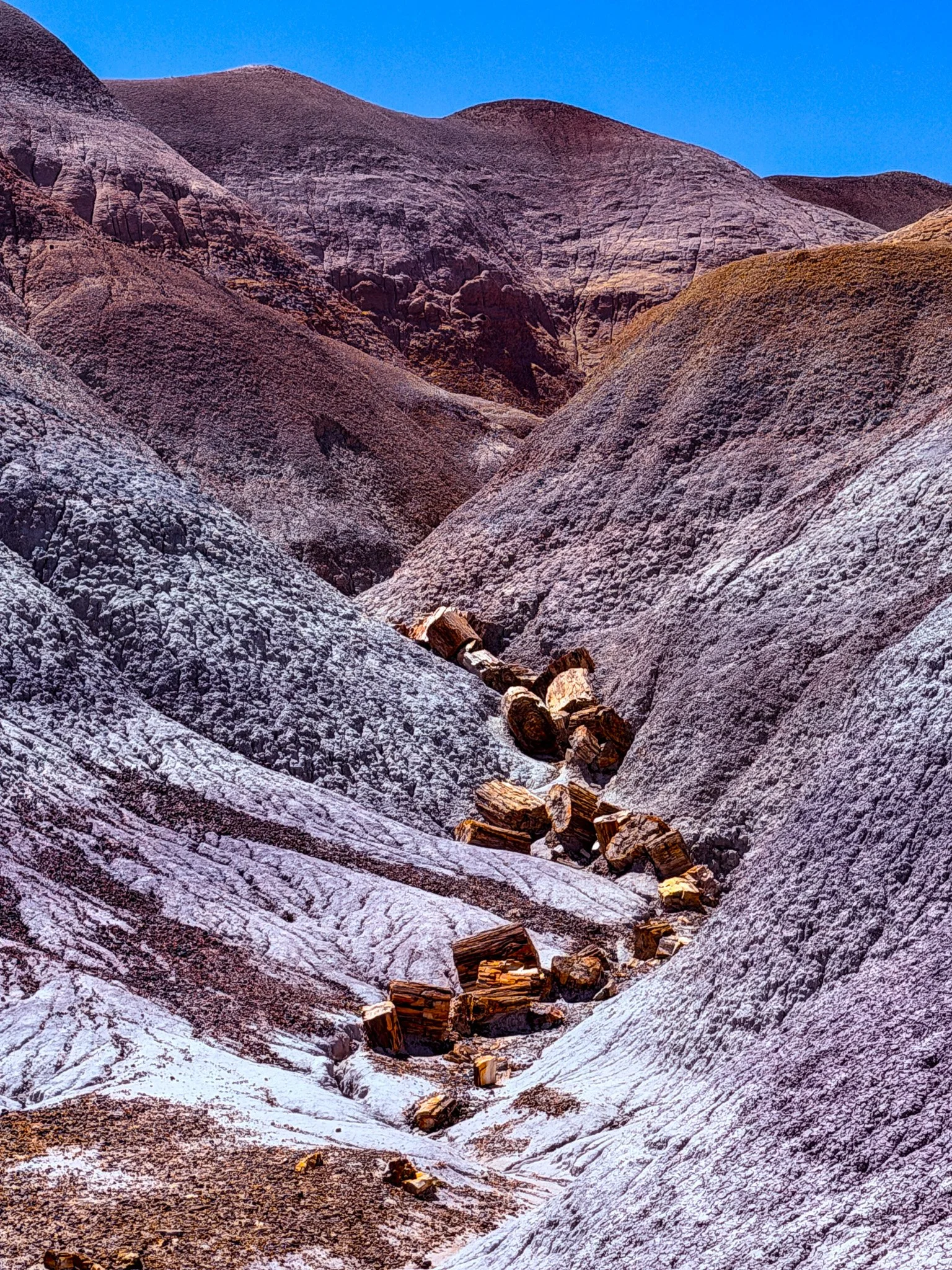 It was here, on the Blue Mesa Trail, that we started to see some petrified wood.