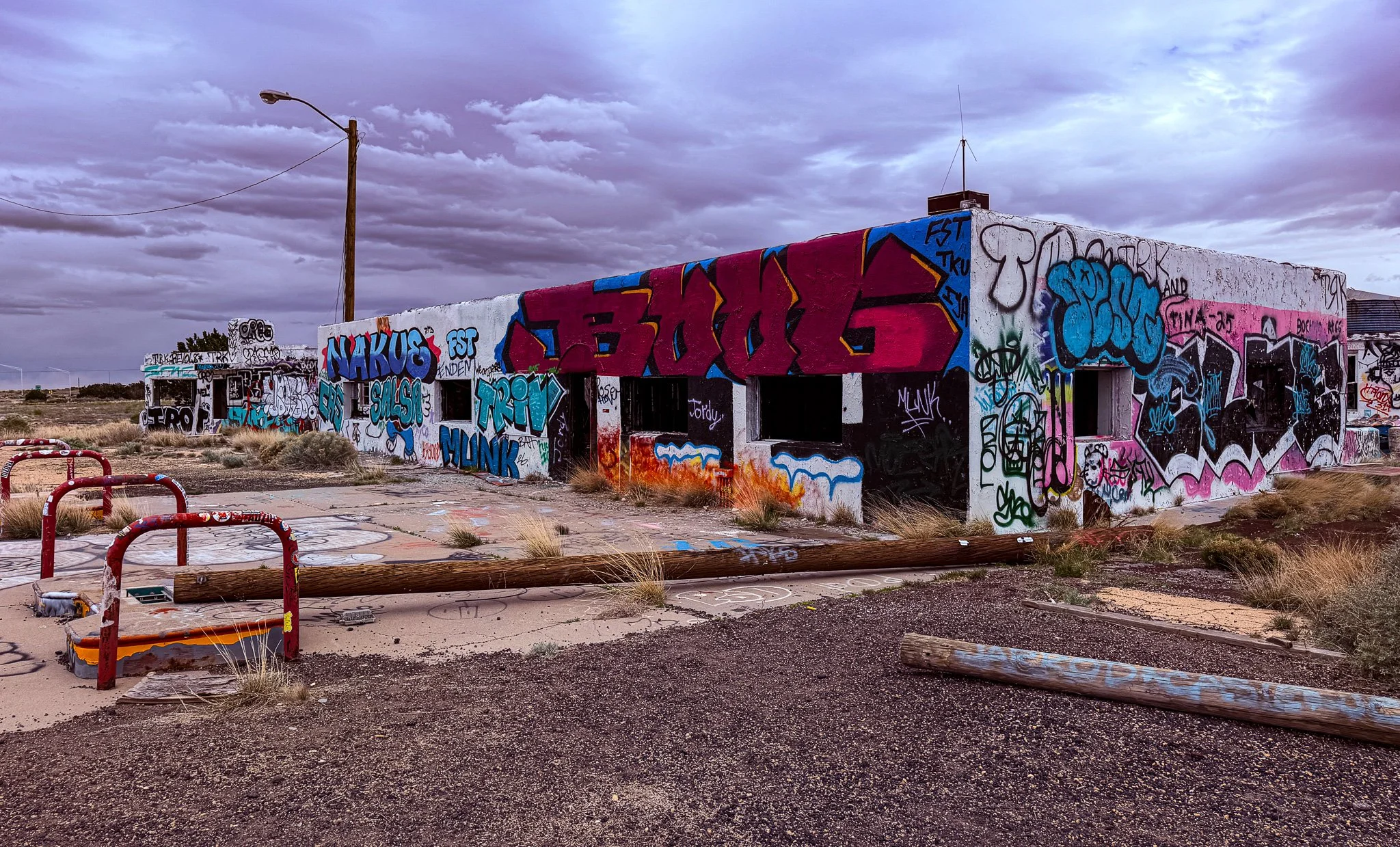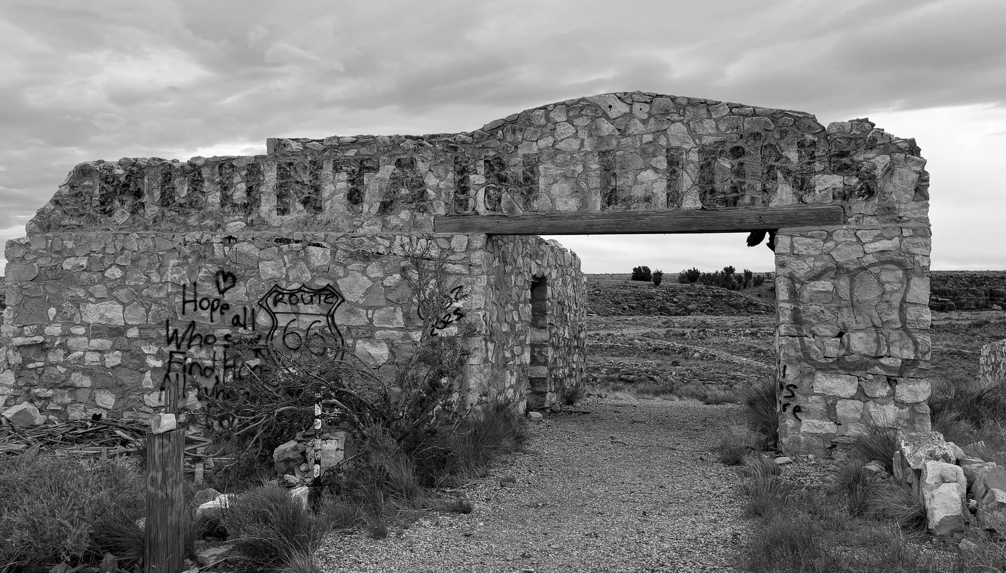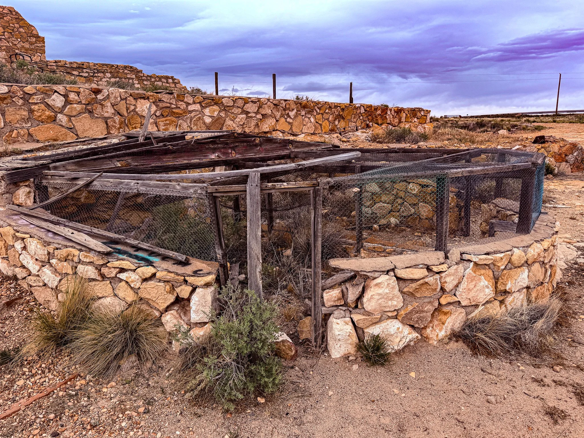 The ruins at Two Guns along U.S. Route 66 are the remains of a once-bustling tourist stop. In the 1920s–30s, it featured a zoo, trading post, and gas station built near Canyon Diablo. The stone enclosures of the ill-fated zoo still stand, tied to the turbulent ventures of promoter Harry E. Miller. Fires, disputes, and declining traffic eventually left the site abandoned, creating the haunting ruins seen today.