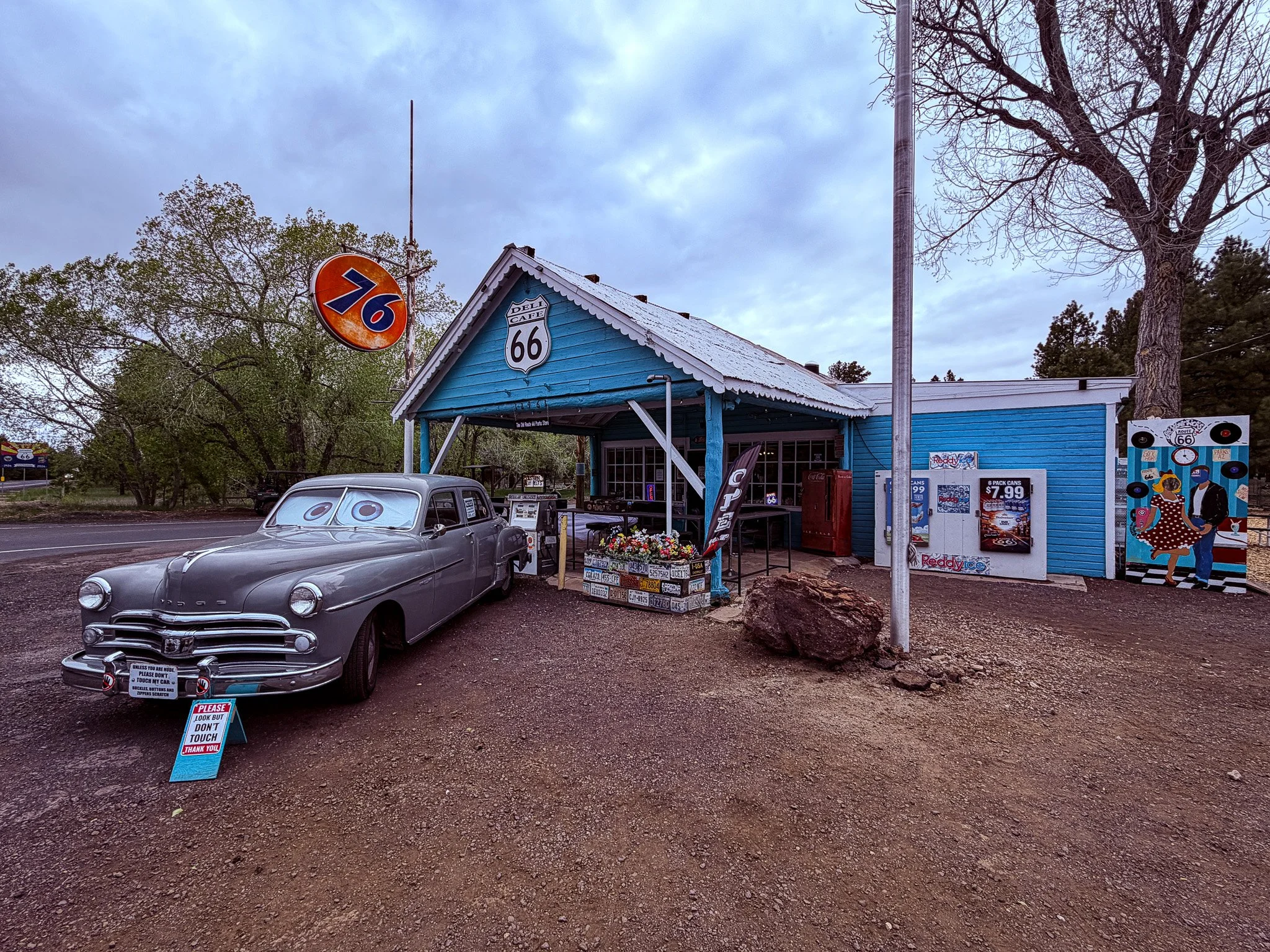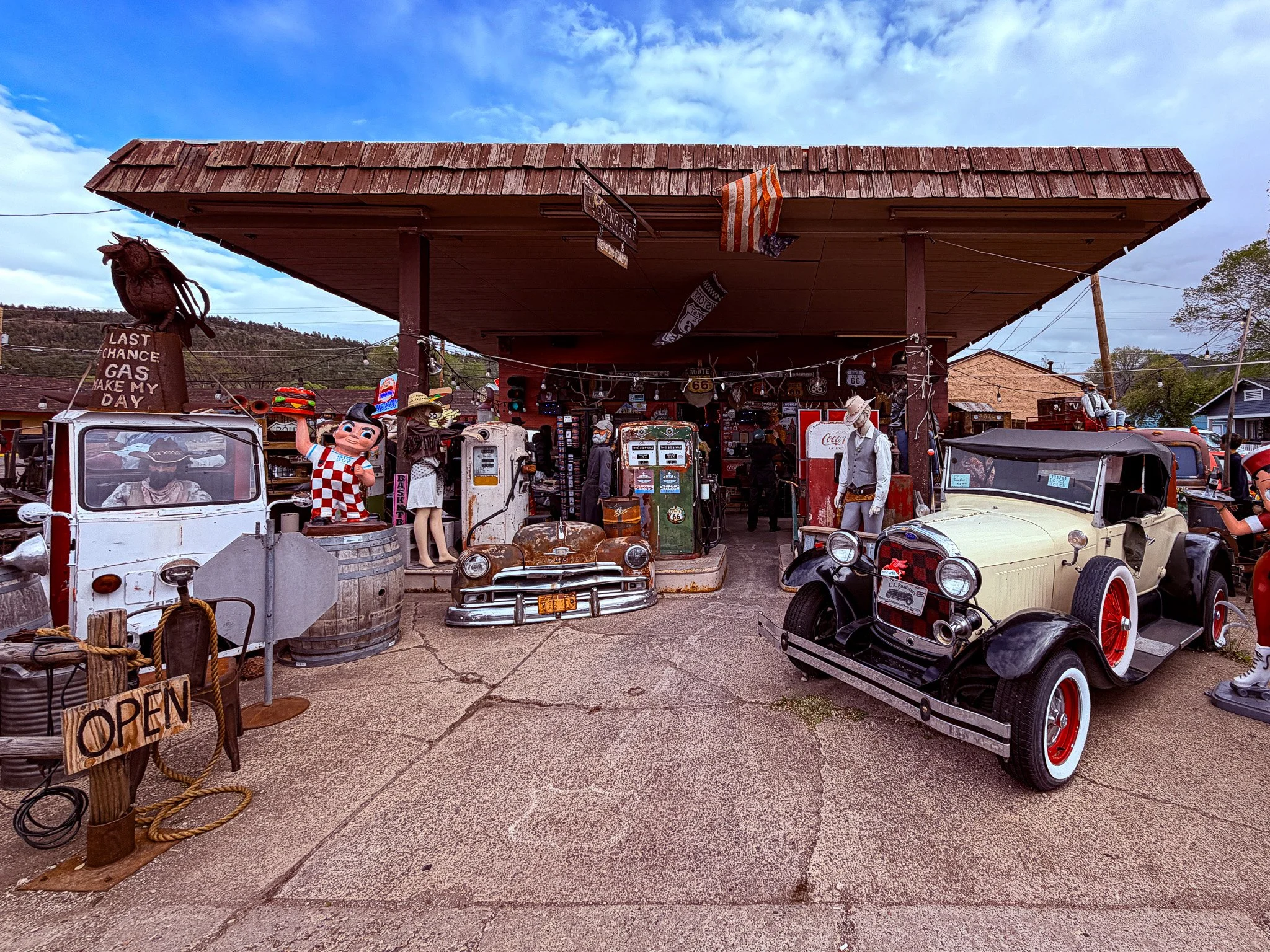 We stayed in Williams for the night. Williams, AZ is called the Gateway to the Grand Canyon. They even have a train that takes tourists from Williams to the Canyon and back. Because of the proximity to the Canyon and Route 66, Williams does a big tourist business and therefore has lots of gift shops, eating establishments and overall quirky things to check out.