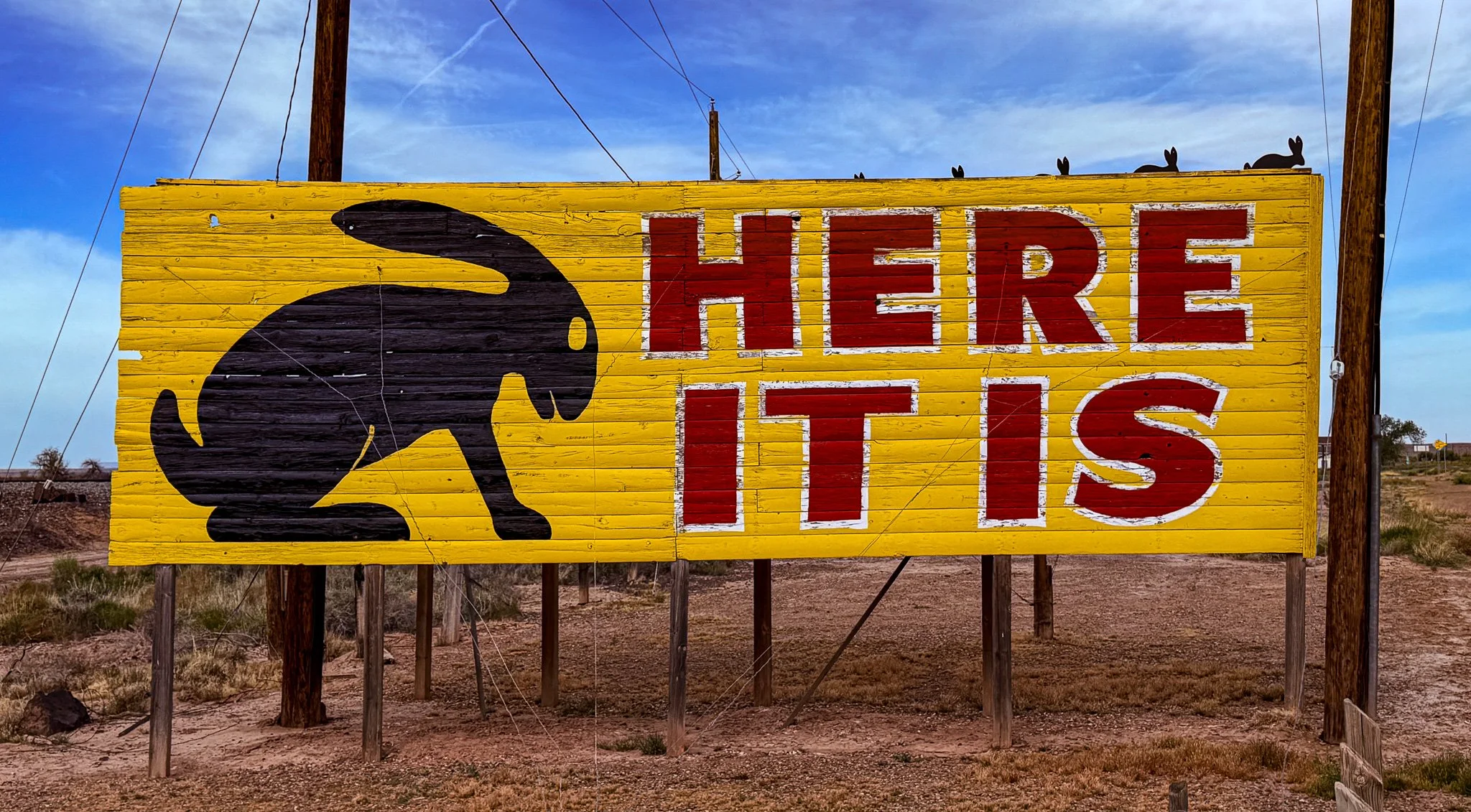 Reminiscent of the advertising campaign by Wall Drug in South Dakota, the Jackrabbit Trading Post has gone all-in on roadside billboards. They are simple black rabbit silhouettes on a yellow background with the number of miles to the location. We saw them all along the route and they are a staple of the experience. Well, the advertising works, because everyone makes a point of stopping at this otherwise unremarkable gift shop in the middle of nowhere, AZ. This is a photo of their truly iconic billboard when you finally arrive - HERE IT IS!