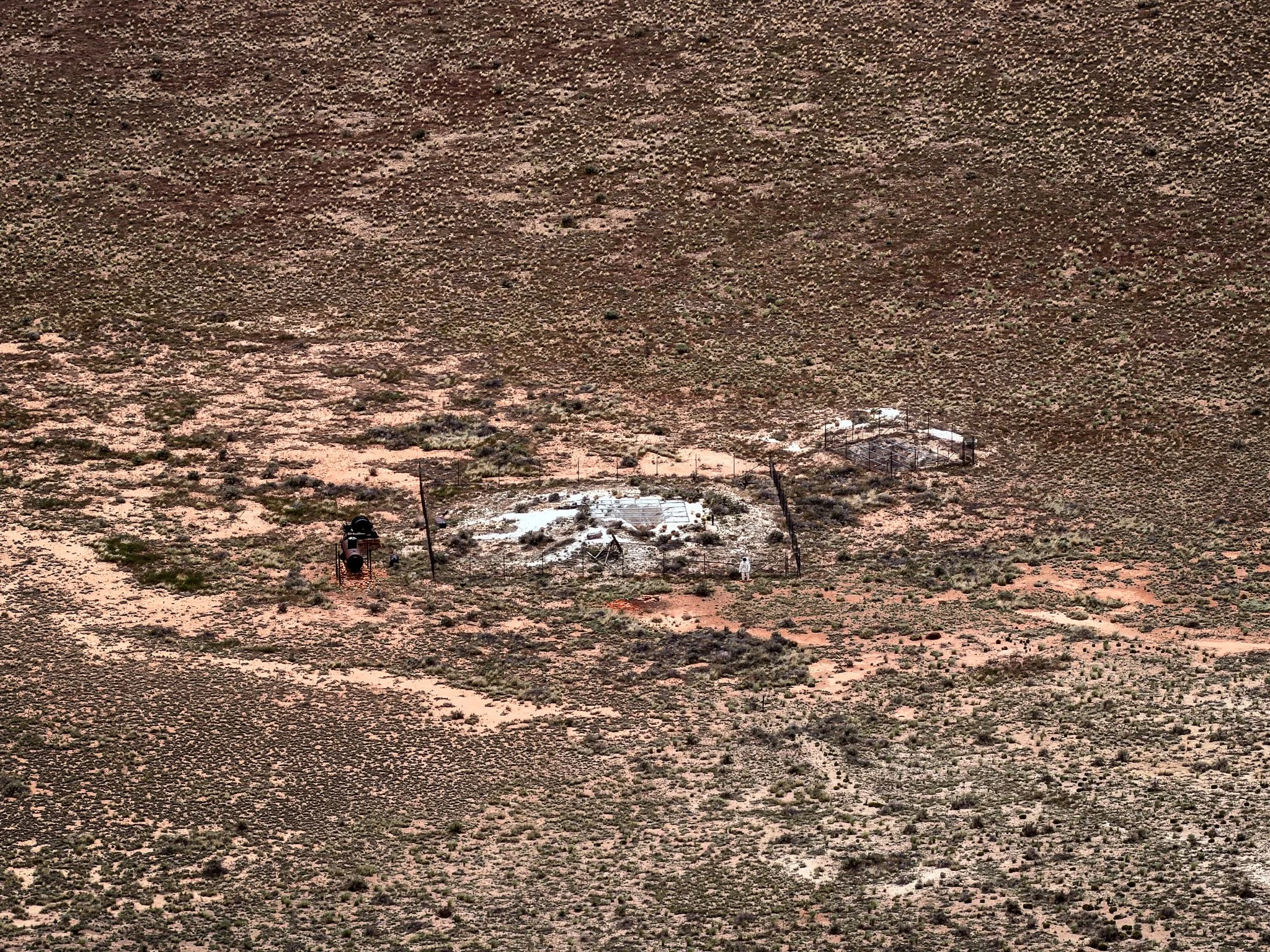Zooming way in on the bottom of the crater you can see one of the drilling sites where they once drilled in hopes of discovering the meteorite that landed here. However, it has subsequently been determined that the meteorite was blown up upon impact and the largest intact piece ever found was the image above.