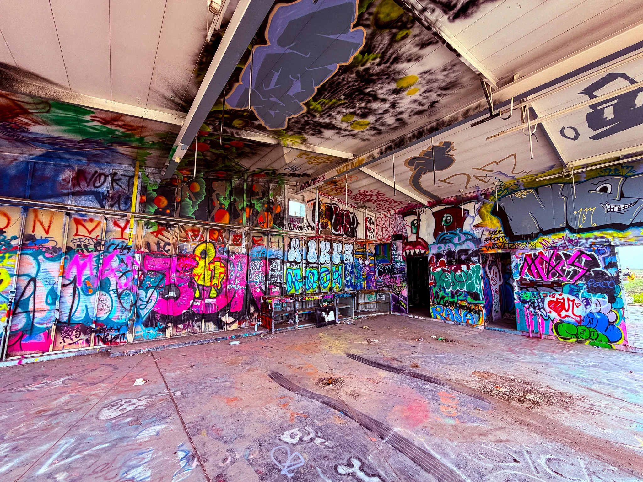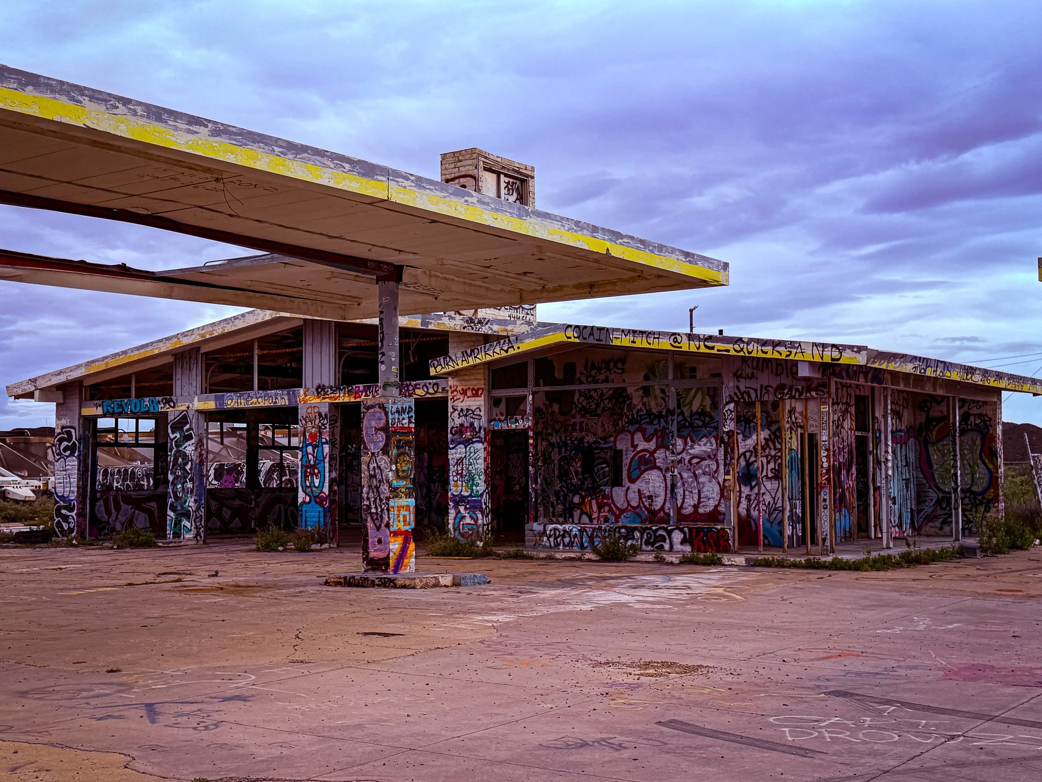 The bridge sits just beside the stone cages of the failed zoo, adding to the eerie atmosphere. Though no longer in use, parts of it remain visible, and nearby you can also see remnants of older crossings that predate Route 66. It’s a striking example of early desert infrastructure now left to decay alongside the ghost town.