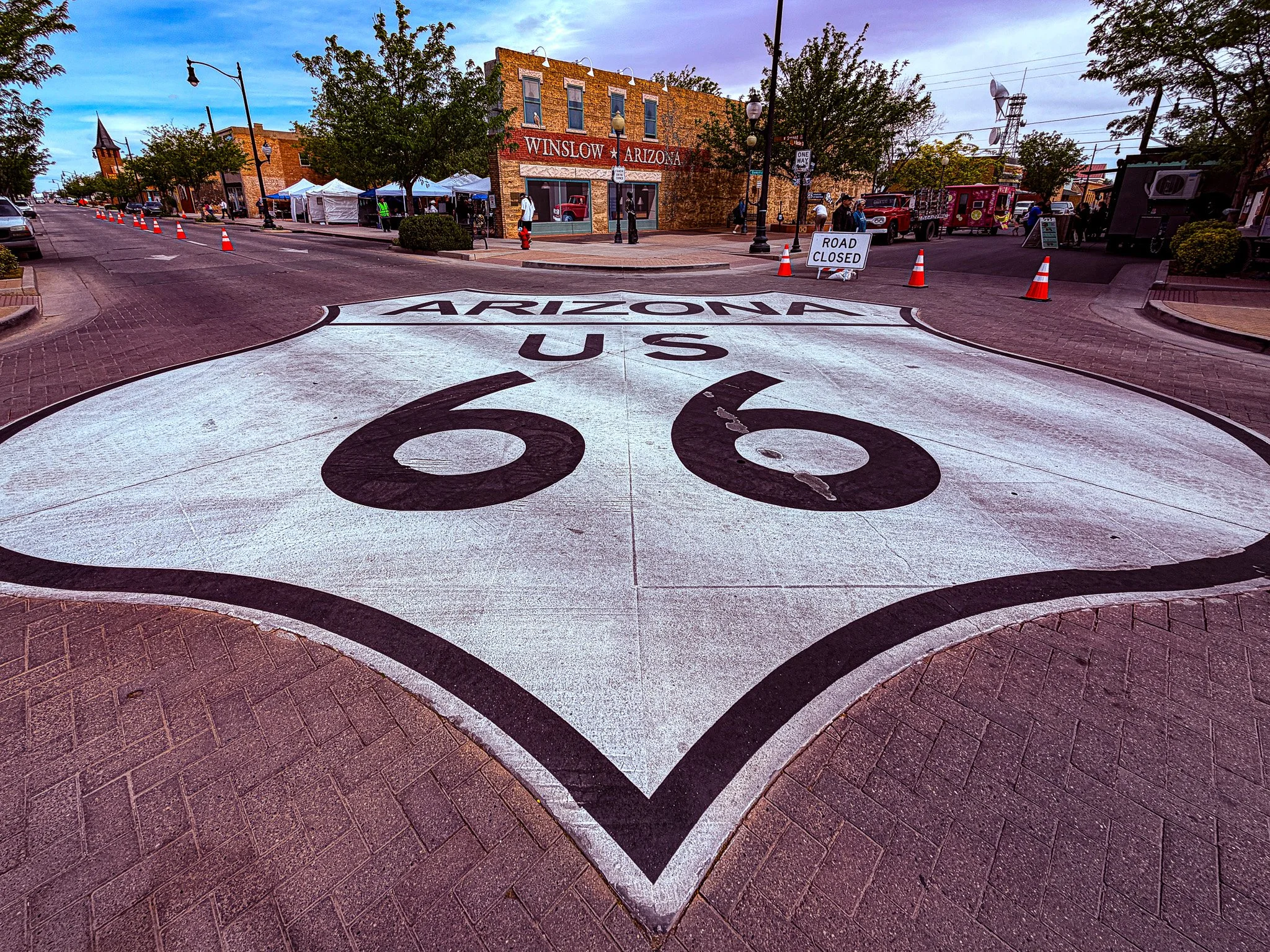 Another of the most photographed locations on the Route - Standing on the Corner Park in Winslow, AZ. This location came to fame due to the classic rock song, “Take it Easy” by The Eagles.