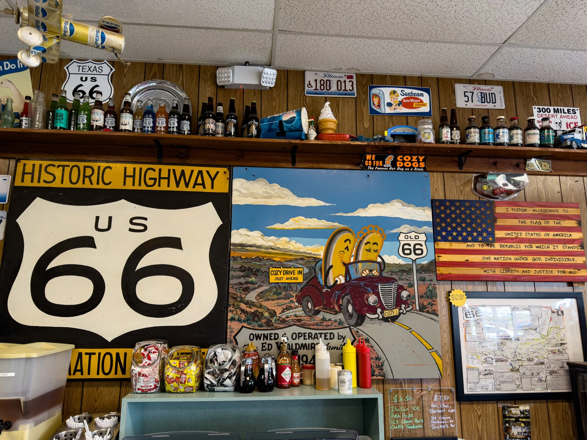 There was no way we were going to travel Route 66 and not have a Cozy Dog. In fact, I had two, but by the time I remembered to snap a photo, the first was already history.