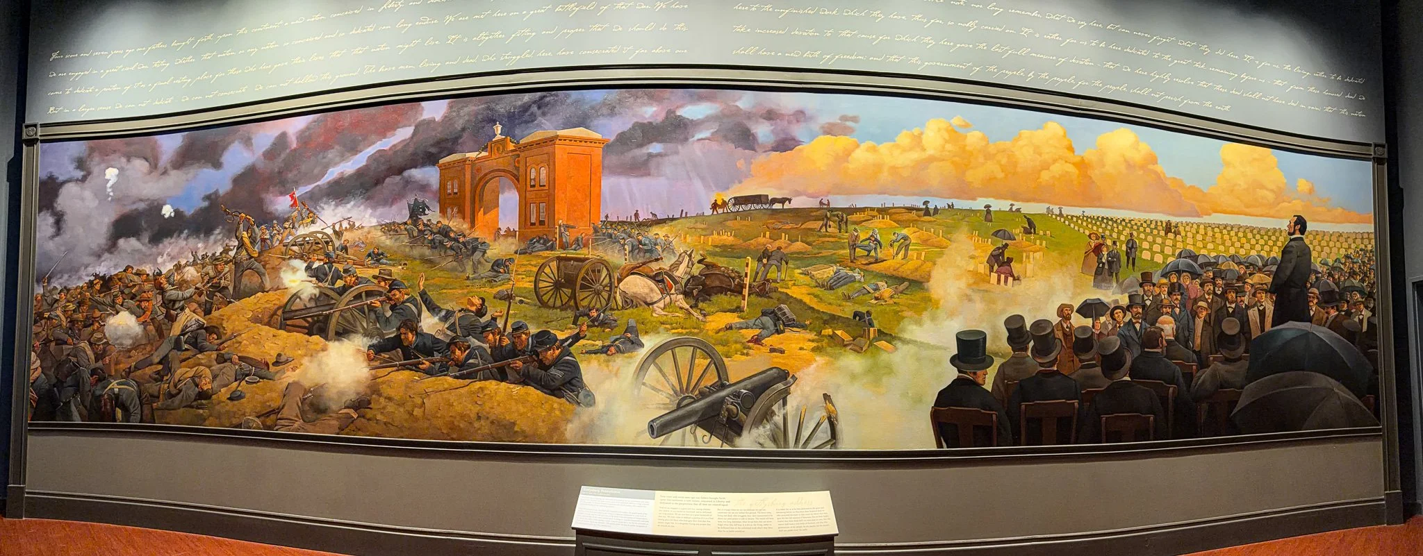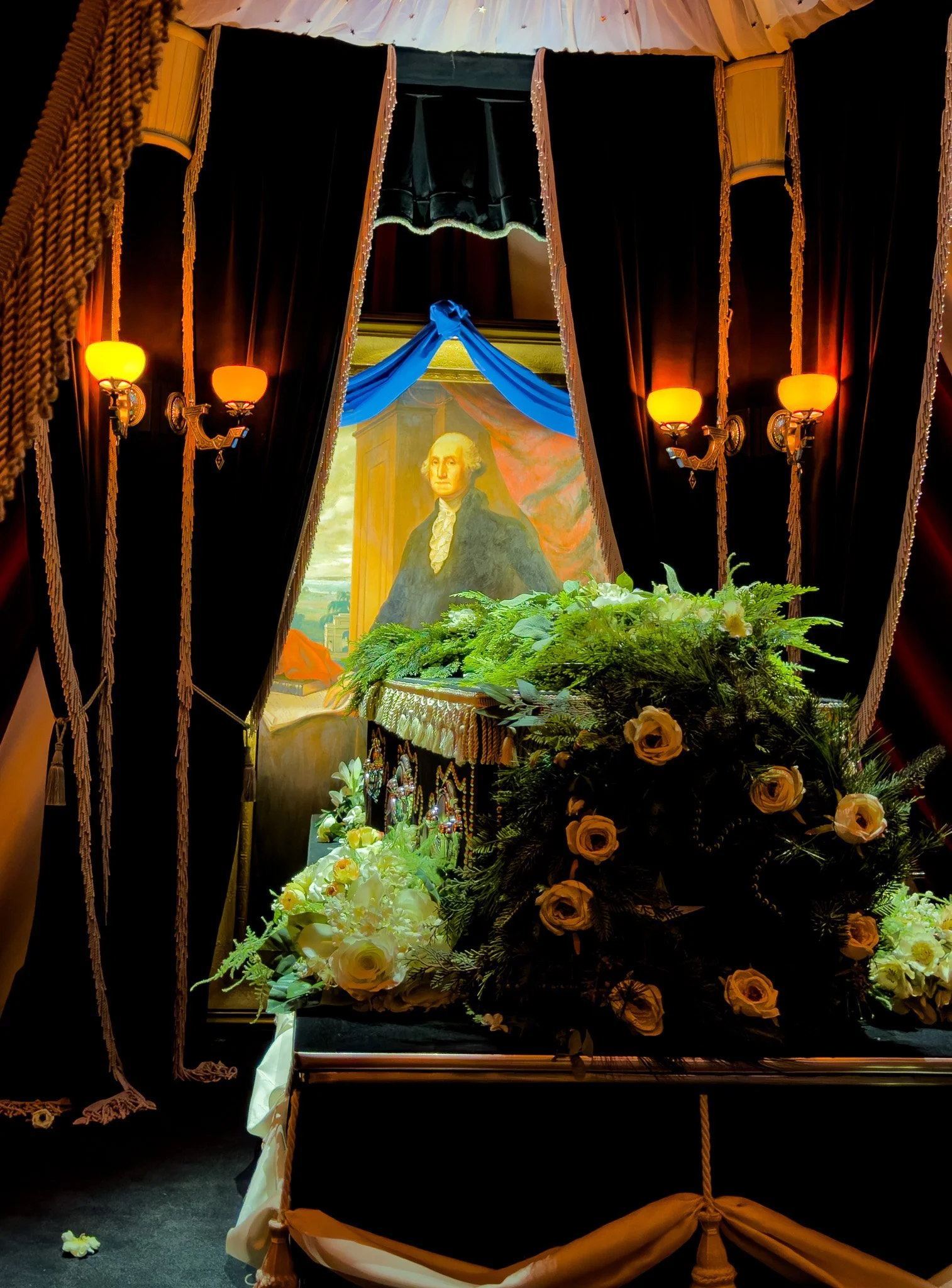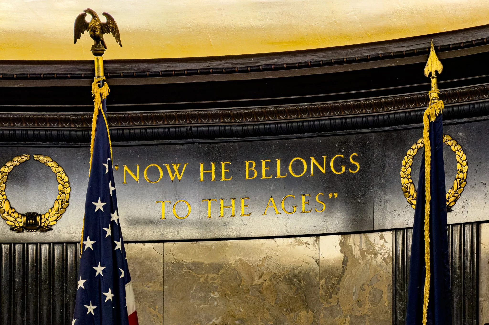 The plaque explains the significance of the quote above the tomb, “Now he belongs to the ages.”