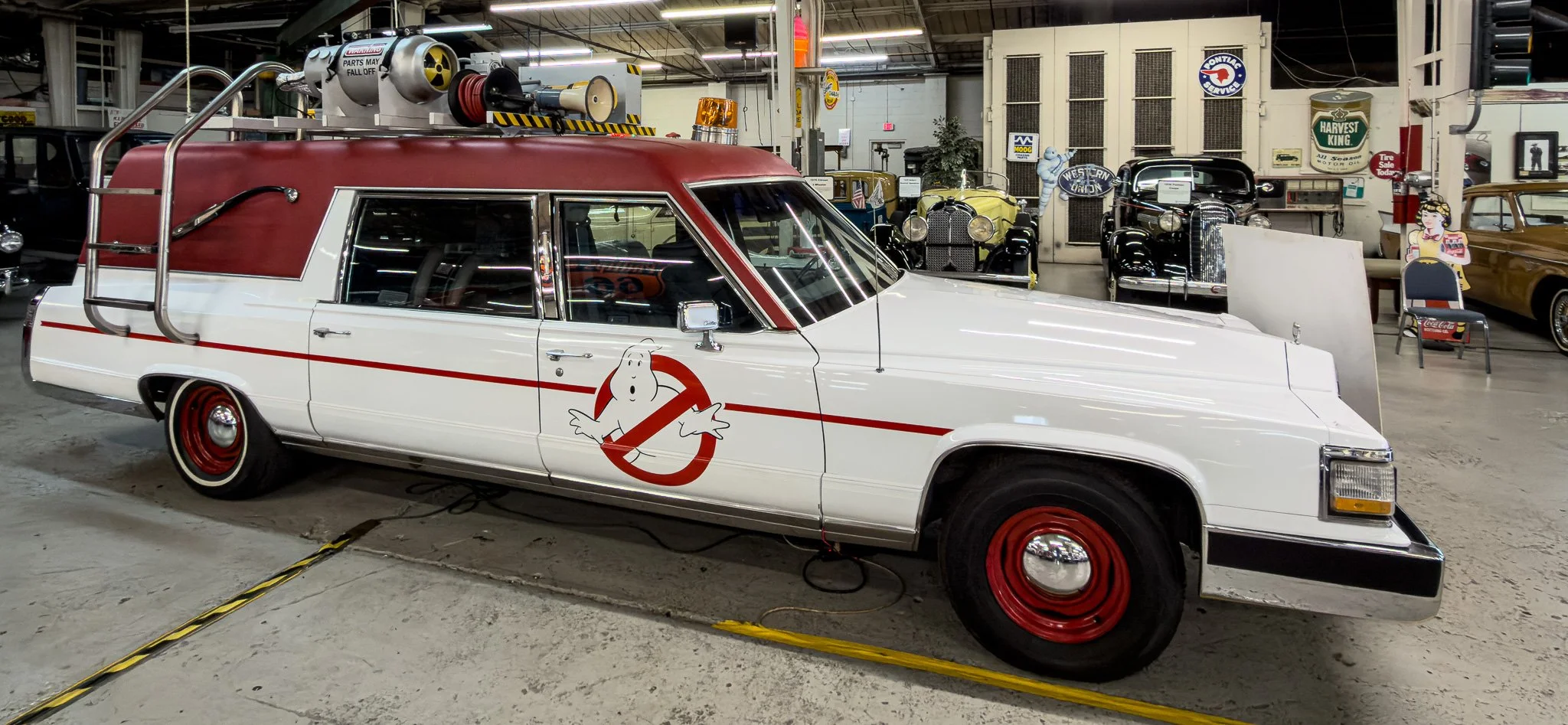 It’s a heavily modified Cadillac Miller-Meteor ambulance, originally built as an ambulance/hearse. In the film, the Ghostbusters outfit it with sirens, lights, and paranormal detection equipment, making it one of the most recognizable movie vehicles ever.