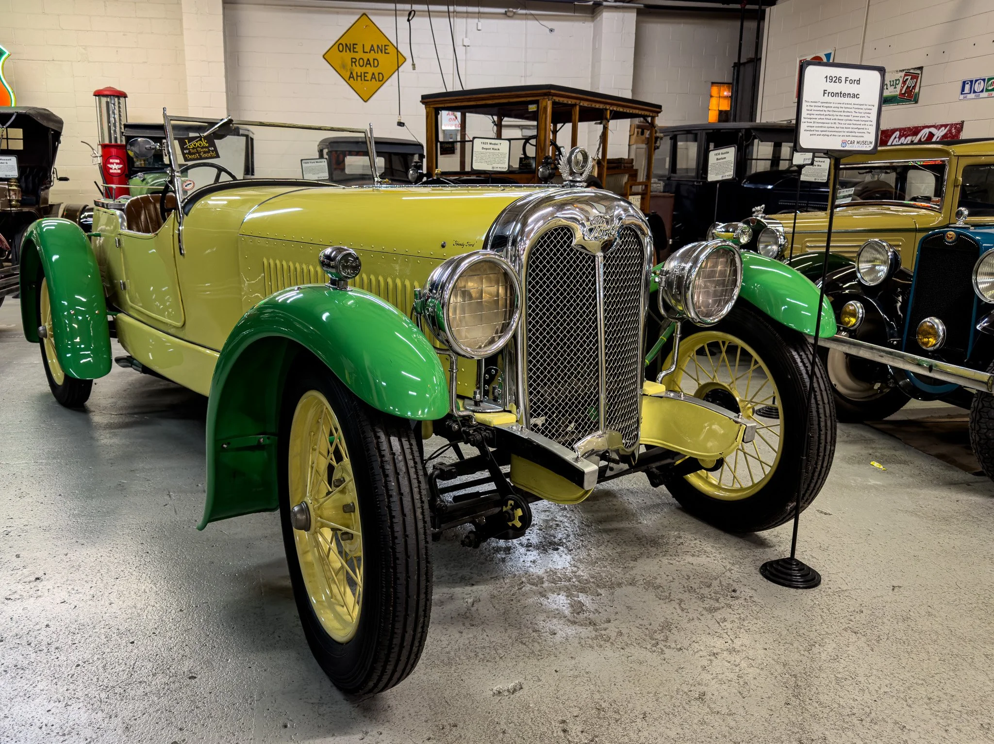 The front of this 1926 Hudson was the actual vehicle used in the 1940 film “Grapes of Wrath” starring Henry Fonda as Tom Joad. For the film it was fitted up as a truck to be the typical “Okie Wagon.” However, over the years the truck bed portion deteriorated and it was restored as more of a roadster as seen here.
