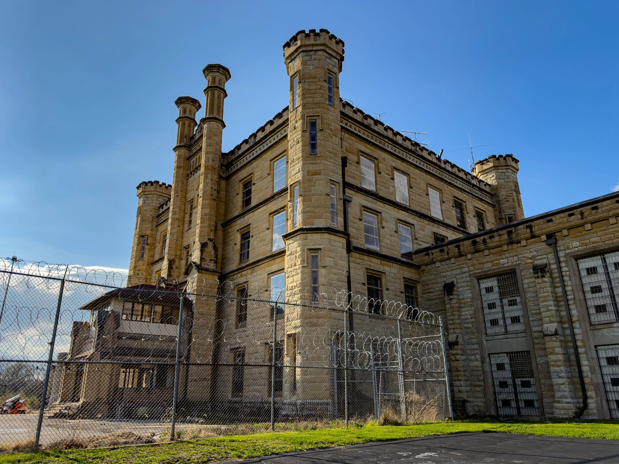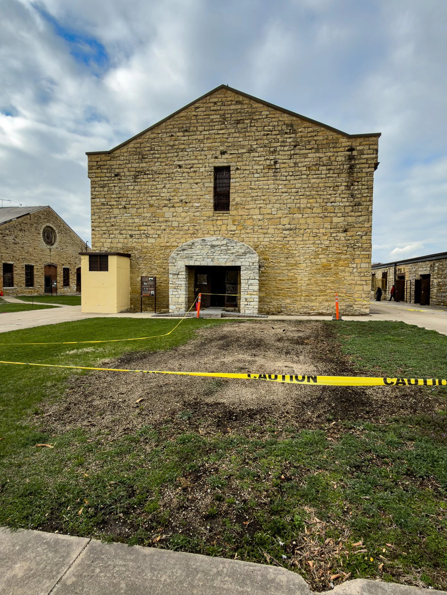 This is the solitary confinement and death row cell block. The second story, with the small window, was where the death row inmates awaited execution. The area which is undergoing turf restoration in front of the building was once the site of another small building which contained the electric chair.
