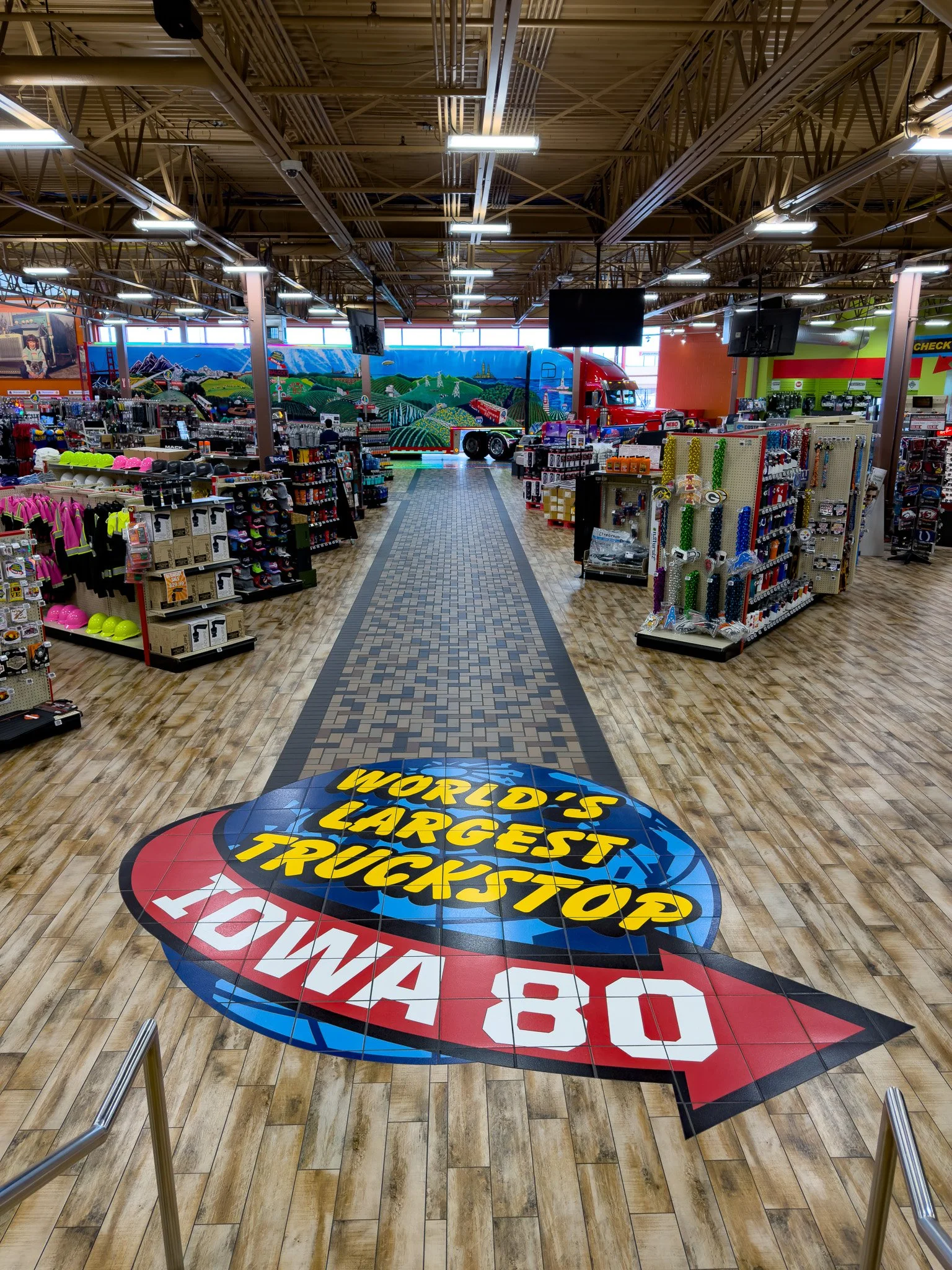 Iowa 80 Truckstop, located along Interstate 80 in eastern Iowa, is widely known as the world’s largest truck stop. Opened in 1964, it spans over 200 acres and serves thousands daily, offering extensive amenities including multiple restaurants, a trucking museum, showers, and service centers—functioning as a small city for truckers and travelers alike.