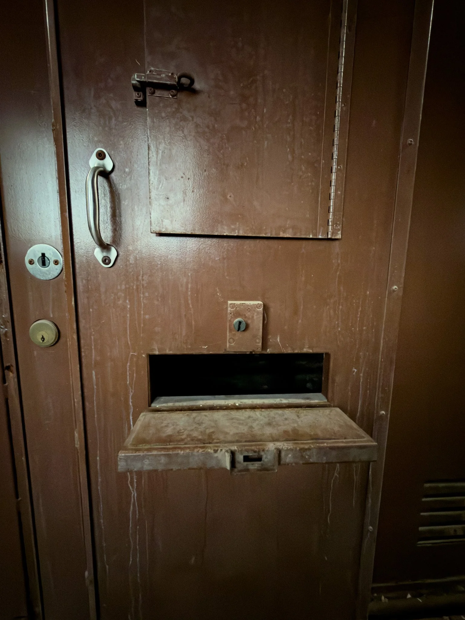 Slot in the steel door for the meal tray to be passed in and out.